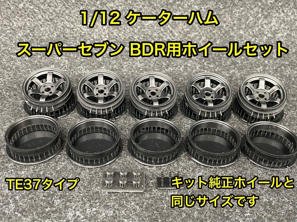 *3Dプリンター製のタミヤ 1/12 ケーターハム スーパーセブン BDR用のTE37タイプホイール5個セットです。センターキャップ、エアバルブが付属します。