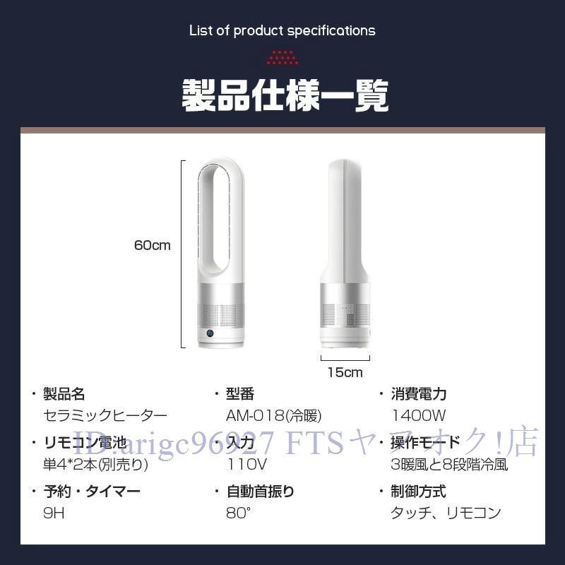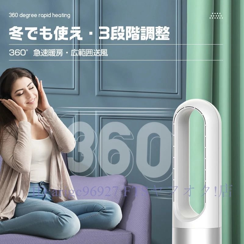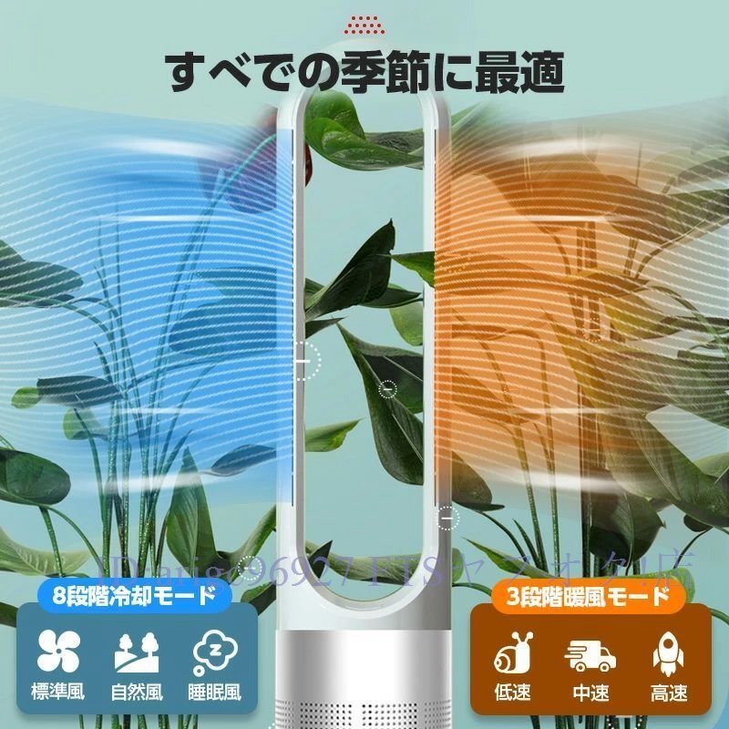 B2000☆扇風機 羽なし DCモーター 温冷風扇 羽根なし 冷風扇風機 8段階風量調節 一台4役 セラミックヒーター 速冷/暖 リモコン付き