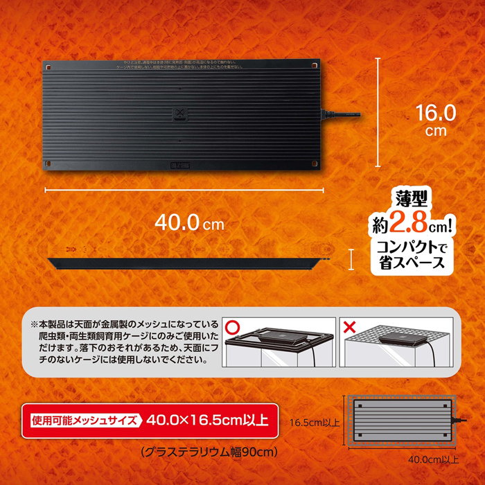 ※本製品は天面が金属製メッシュになっている爬虫類・両生類飼育用ケージにのみご使用いただけます。