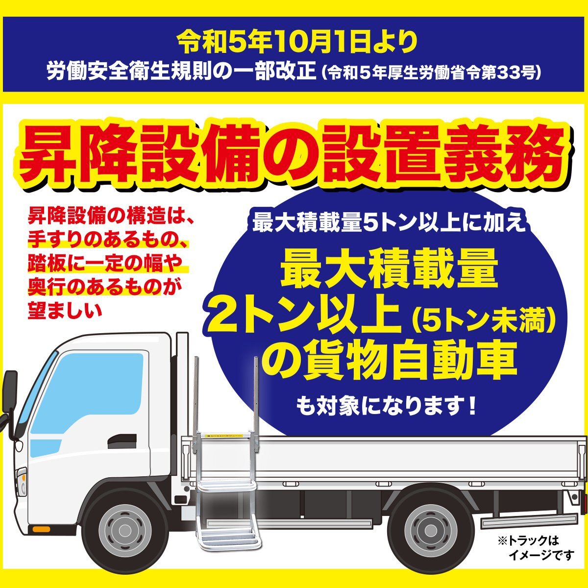 昇降設備設置義務化により、必要となったトラックの荷台に安全に上がるための昇降ステッパーです。