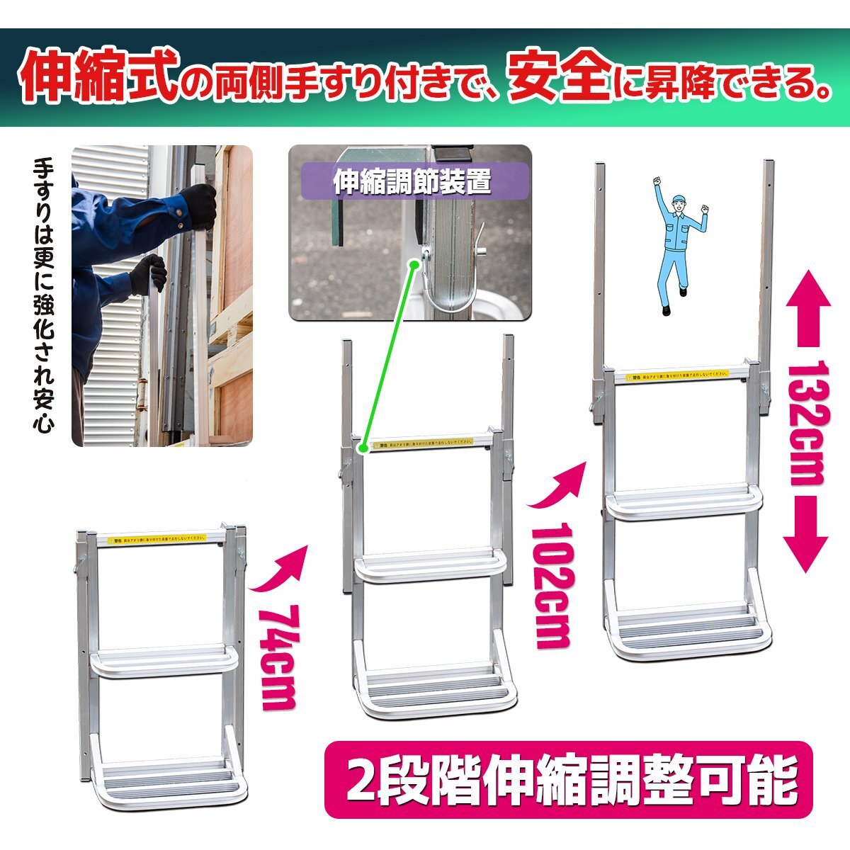 【送料無料】荷台はしご トラックステッパー ワイドタイプ 両側手すり付き トラック用 2段 アルミ製 荷台ステップ ステッパー はしご