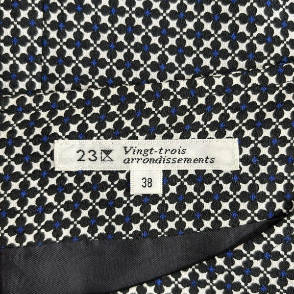 ニジュウサンク 23区 サイズ38 M - 黒×白×ネイビー レディース クルーネック/ノースリーブ/ロング/花柄 美品 ワンピース