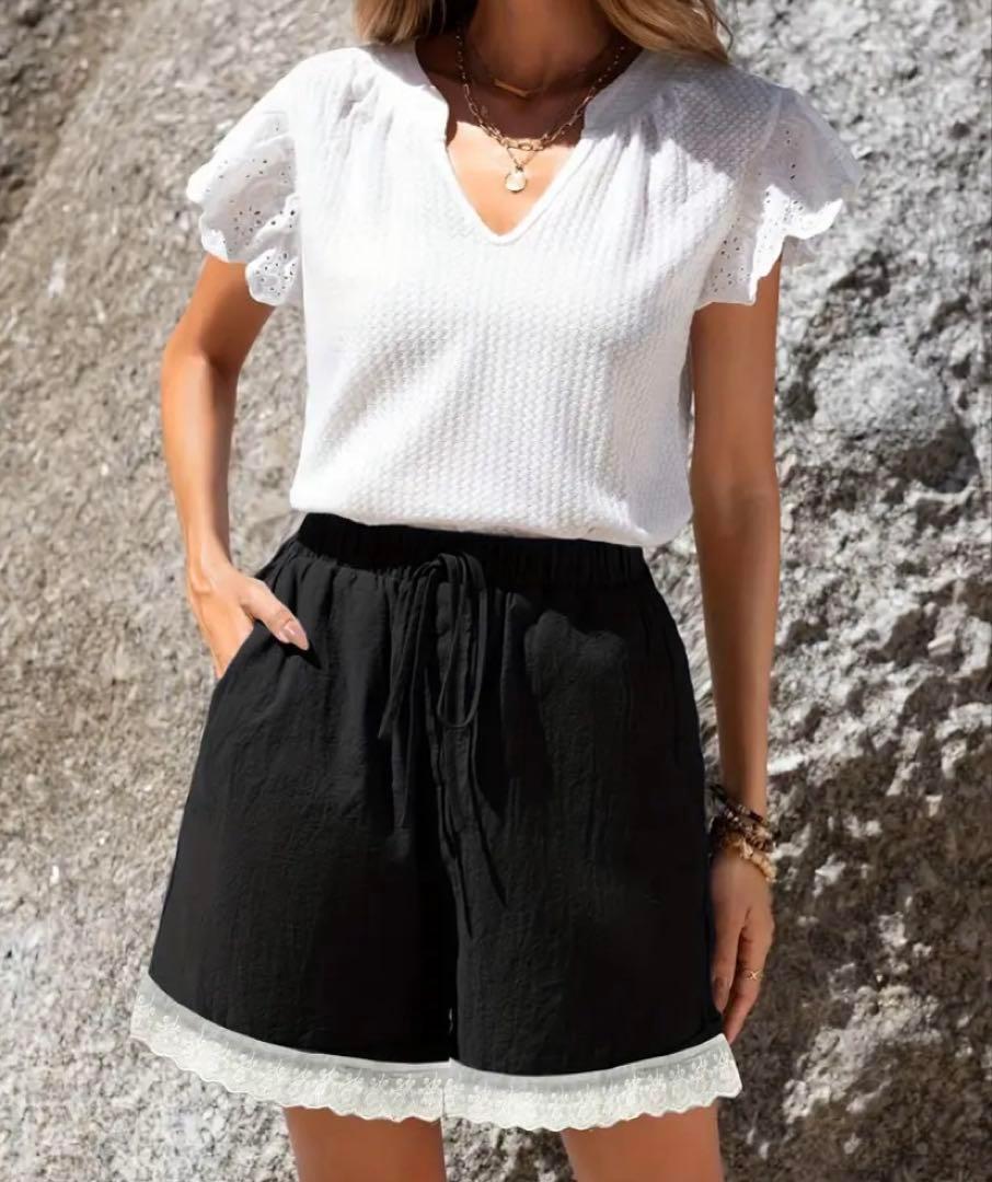 即購入OKです。裾にレースの可愛いカジュアルパンツです。ポケット付き