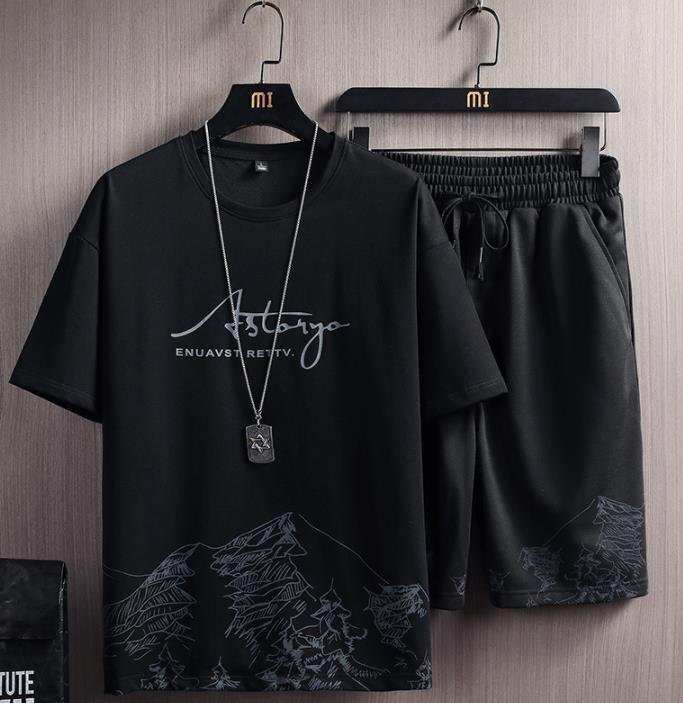 上下セットカジュアルスポーツウェアメンズ tシャツハーフパンツ 半袖通気快適部屋着ルームウエア☆2色/M~4XLサイズ選択/1点