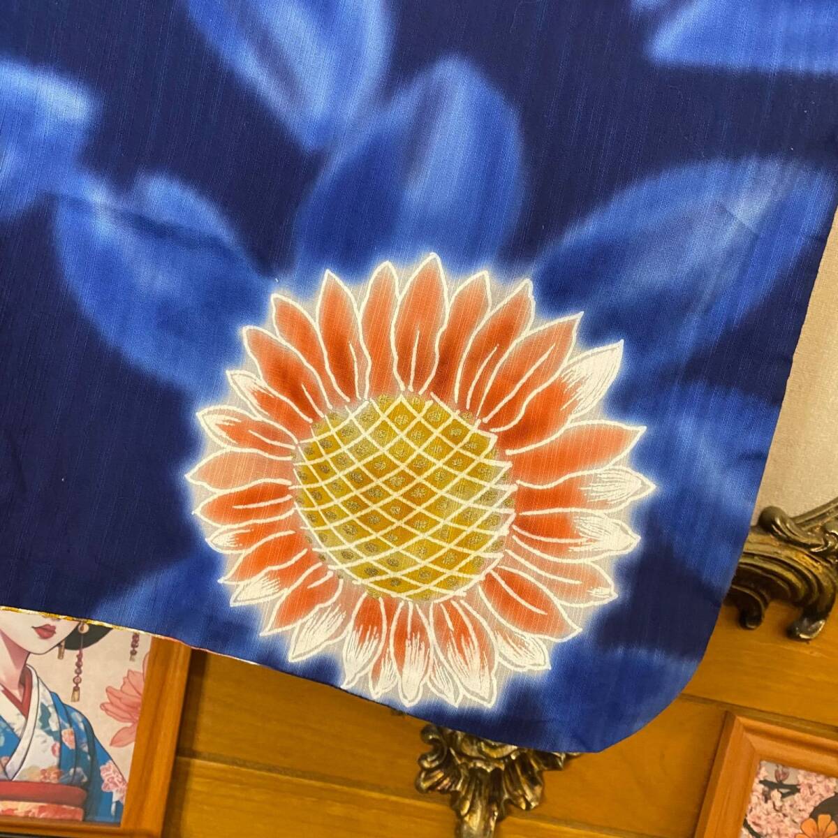 鮮やかな瑠璃紺に咲き誇る向日葵が、