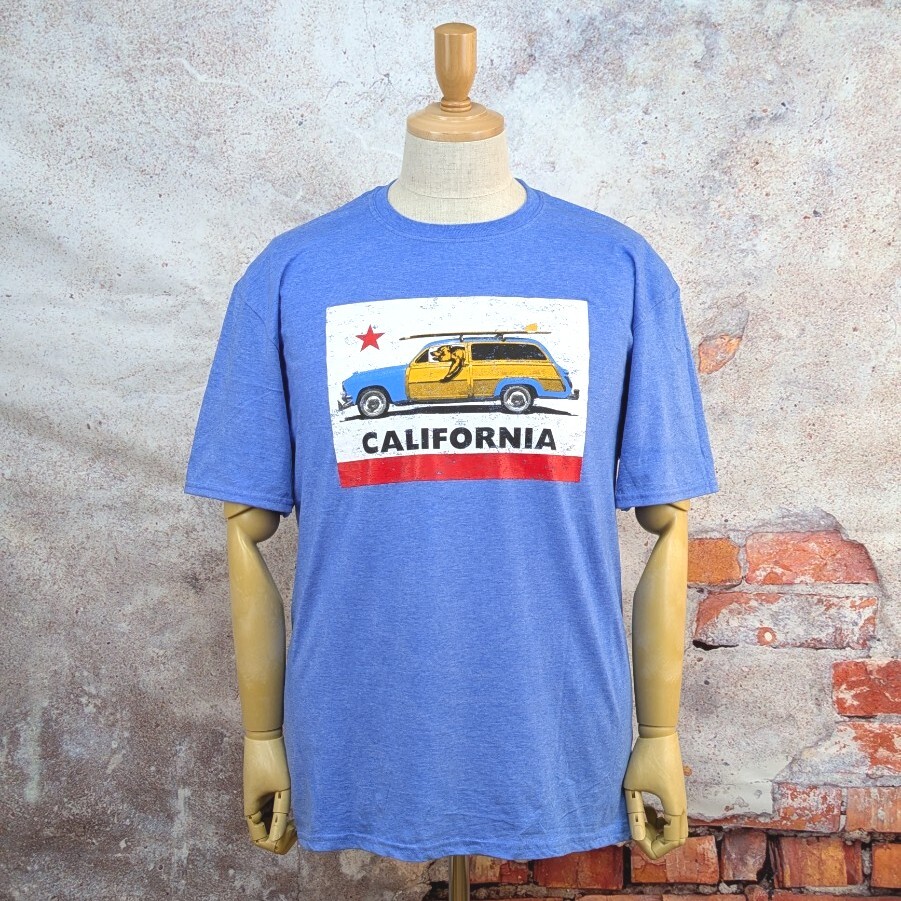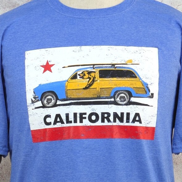 五芒星★と緑の大地を歩くグリズリー熊を描いたカリフォルニア共和国を代表的するデザインではなく、グリズリー熊がボードを積んでアメ車を運転しているデザインです!まるでカリフォルニアのサーファーのようで、とってもカッコいいしかわいいですね。
