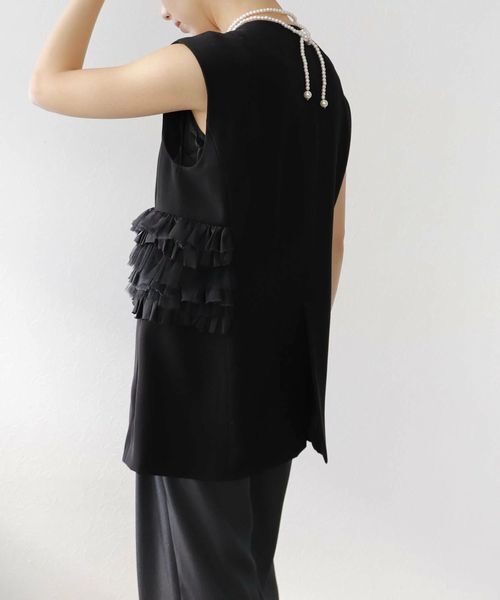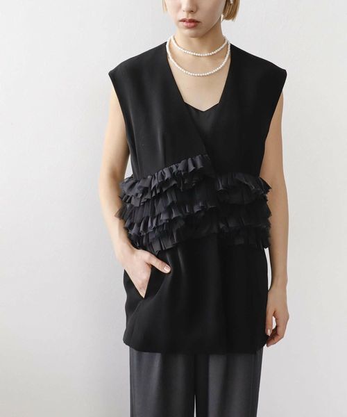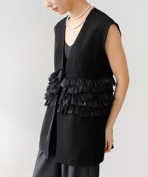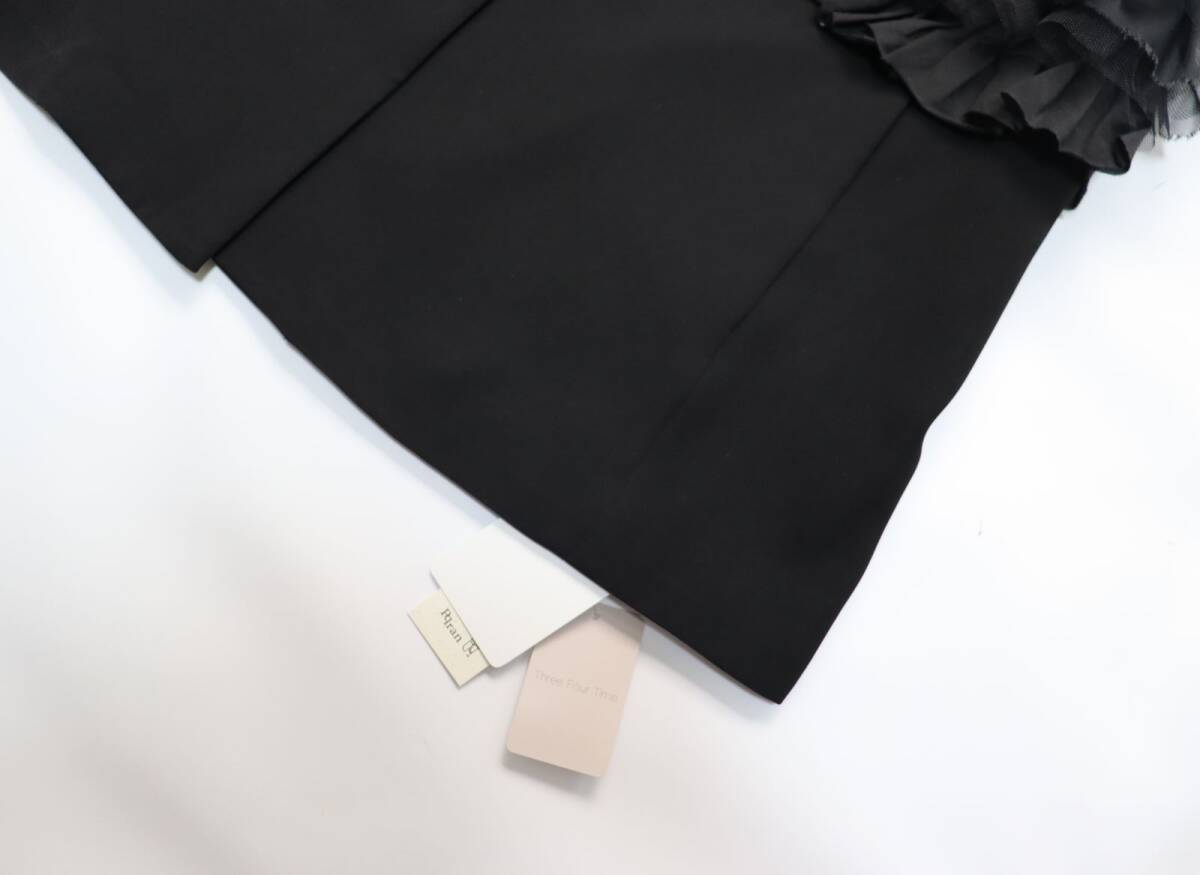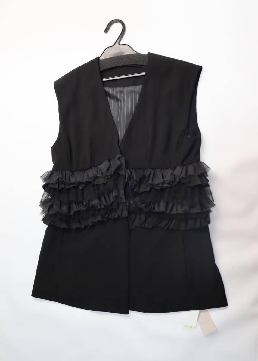Three Four Time (スリーフォータイム) ラッフルベスト 何層にも重なったフリルが華やかでかわいくもありながら、 ブラックワントーンですので、キュートにもモードにも、シックにも着用できる使い勝手のよいお品です。 ブランド商品説明… 華やかなフリルデザインが魅力的なラッフルベスト ポケットが付いているのも嬉しいポイントです。 オケージョンシーンにもおすすめの一着です。 ご質問はお気軽にどうぞ。 ◆カラー:ブラック ◆サイズ:38(M相当) ◆実寸(約):バスト91.0cm、ウエスト91.0cm、ヒップ107.0cm、肩幅42.5cm、着丈72.5cm ◆素材:表地:ポリエステル100% 別布:ポリエステル100% 別布:コットン70% ナイロン30% 裏地:コットン100% ◆新品・未使用 ◆定価17,600円(本体16,000円+消費税) |