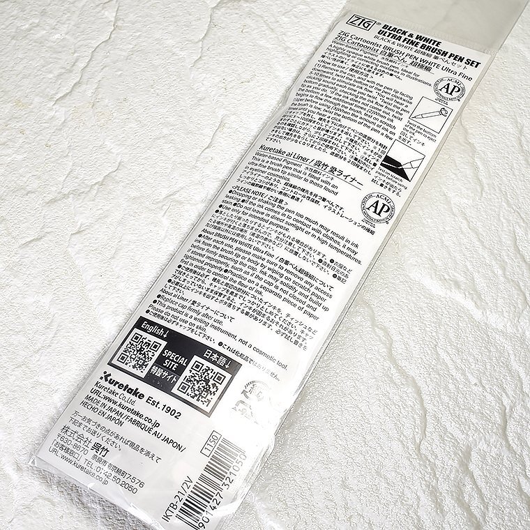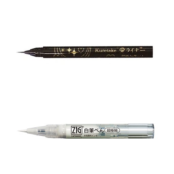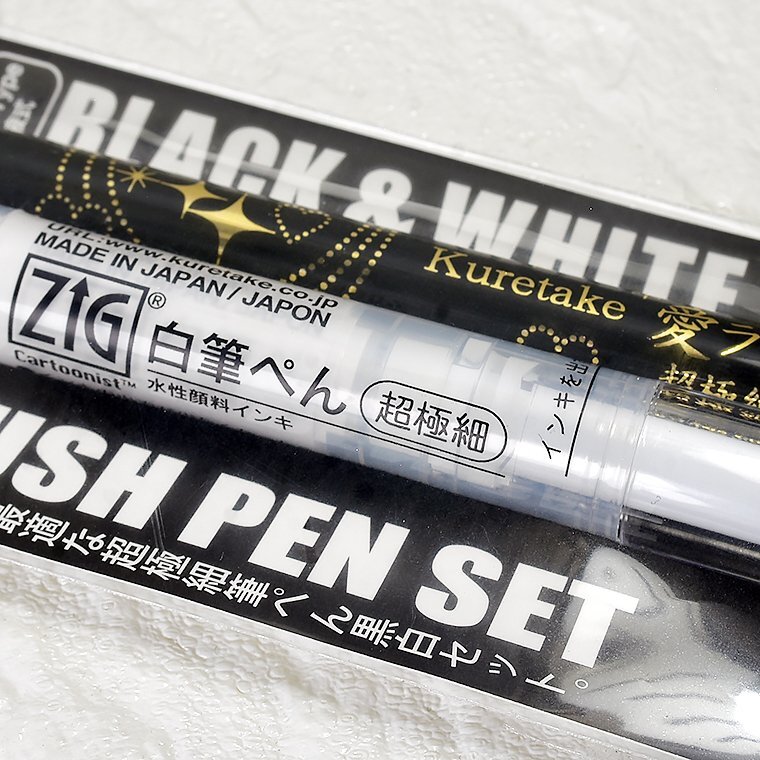 | 【呉竹/Kuretake】IKTB-21/2V BLACK & WHITE ULTRA FINE BRUSH PEN SET 超極細 筆ぺんセット ![]() 呉竹は1902年に製墨業として創業し、1973年に開発した「くれ竹筆ぺん」を初めとし、 「書道業界」だけでなく「アート業界」にも進出しています。 今回ご紹介するのは、ブラックとホワイトの筆ぺんのセット、 「BLACK & WHITE ULTRA FINE BRUSH PEN SET」です! 強弱のある線を描くことができますので文字だけでなく、絵を描くにもおすすめです。 ![]() 【ZIG Cartoonist / 白筆ぺん 超極細】 イラストのハイライトに使える白色の筆ぺん。 隠ぺい性が高く、修正にも使えます。 ペンの底部分を回すとインクを出すことができます。 乾くと水に流れにくい水性顔料インキ。 ![]() 【Kuretake ai Liner / 呉竹 愛ライナー】 アイライナーのような、超極細の穂先を持つ筆ぺんです。 しっかりとコシがあり、コントロール性抜群。 イラストレーションの極細ラインの輪郭線や細かい表現に最適! ![]() <愛ライナーについて> これは化粧品ではありません。 ご使用後は必ずキャップをしてください。 *********************************************************** <詳細>呉竹 ZIG BLACK & WHITE 超極細筆ぺんセット KTB-21/2V 【呉竹 愛ライナー 超極細】 サイズ:φ9.5×120mm インク:水性顔料インキ(黒) 【呉竹 ZIG CARTOONIST 白筆ぺん 超極細】 サイズ:φ12×117mm インク:水性顔料インキ(白) 定価 : 1,150円(税込1,265円) 日本製 新品未使用 *********************************************************** |