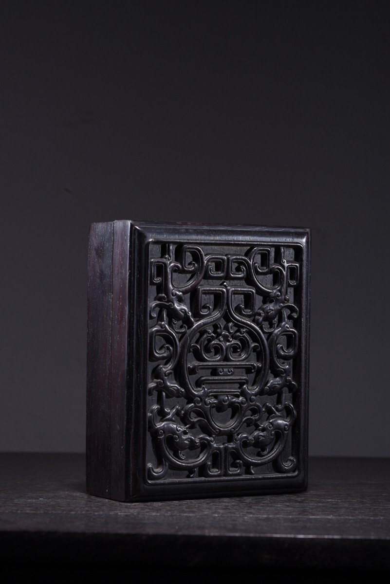 【瓏】紅酸枝の木彫 臙脂盒 清時代 極細工 手彫り 置物 擺件 古美術 骨董品 蔵出