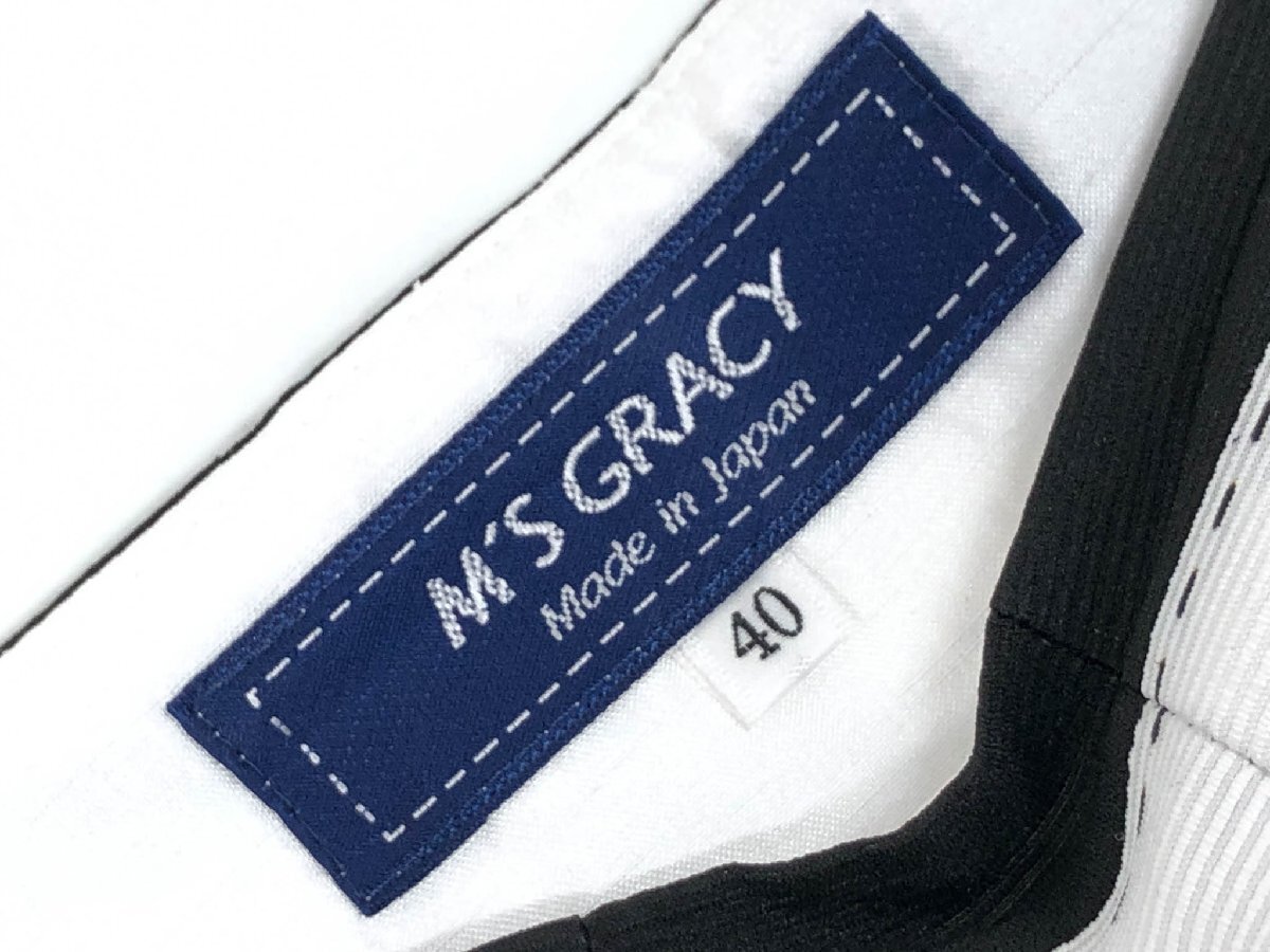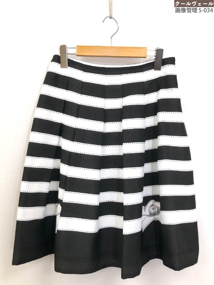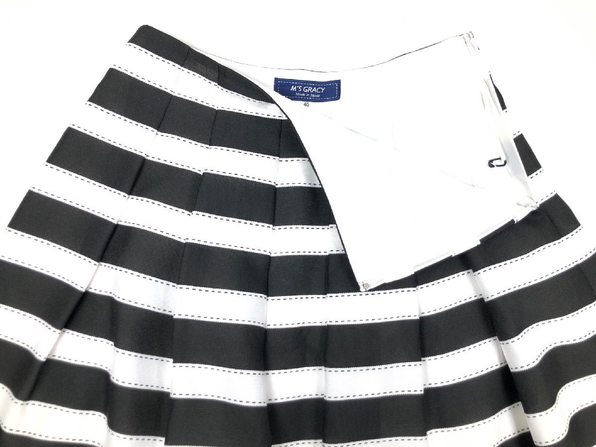 HH超美品【M'SGRACY エムズグレイシー】FJ-917314 ボーダー×花×リボン フレアスカート (レディース)size40 ブラック×ホワイト◇35LF3985