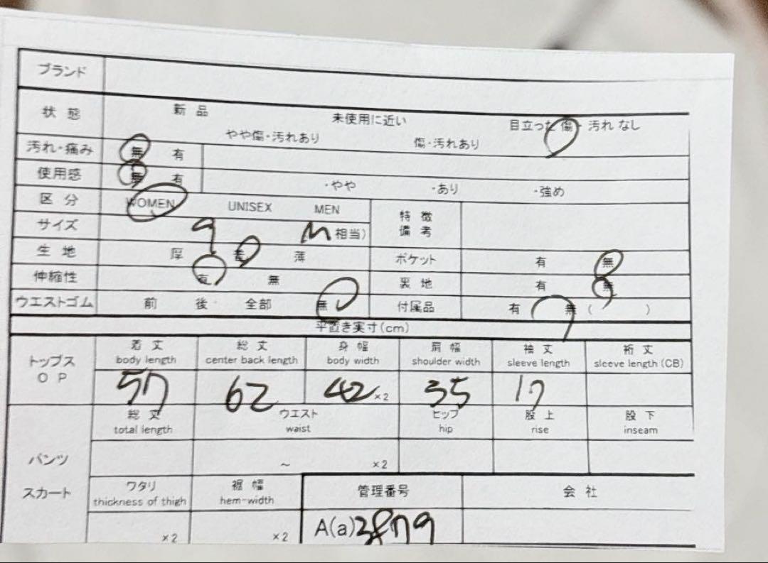 【採寸表】:画像にてご確認ください