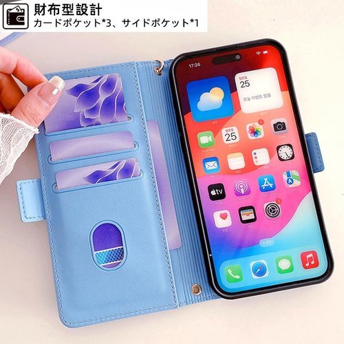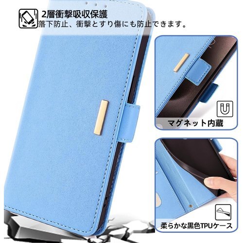 【機能性4:カード収納と安全保護】窓口式のカードスロットとサイドポケットも装備しております。ちょっとした外出する際に、財布が無くても手帳型ケースだけで十分です。内蔵マグネットの留め具なのでピタッと閉まります。クレジットカードなどの情報漏洩を防ぐために、カード入れの内側にRFID自動遮断の素材を採用します、無接触なプライバシー盗難から個人情報を防衛します。ご注意:電磁波を遮蔽する素材なので、カードをいれたままの読み取りはできません。