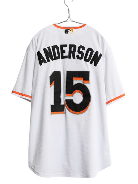 MLB オフィシャル MIAMI MARLINS マイアミ マーリンズ 半袖ベースボールシャツです。 ボディーは、Majestic ATHLETIC( マジェスティック ) 1950年代創業、MLB公式ユニフォームのサプライヤーとして 全球団のユニフォームにロゴを配することを許可された唯一のブランド 素材表記はありませんが、 伸縮性、透け感のあるジャージ素材が使用されています。 軽量で通気性の良い COOL BASE クールベーステクノロジーを採用 吸湿発散性のインターロック生地を使用しています フロントに人気チーム、マーリンズのワッペン バックに2017年~ 現在まで活躍している ブライアン・アンダーソン(Brian Anderson)のネームと背番号15 ホワイト × ブラック × オレンジの好配色のチームカラー そのままでももちろん、重ね着にもお勧め 着まわしの利く商品です。 |
