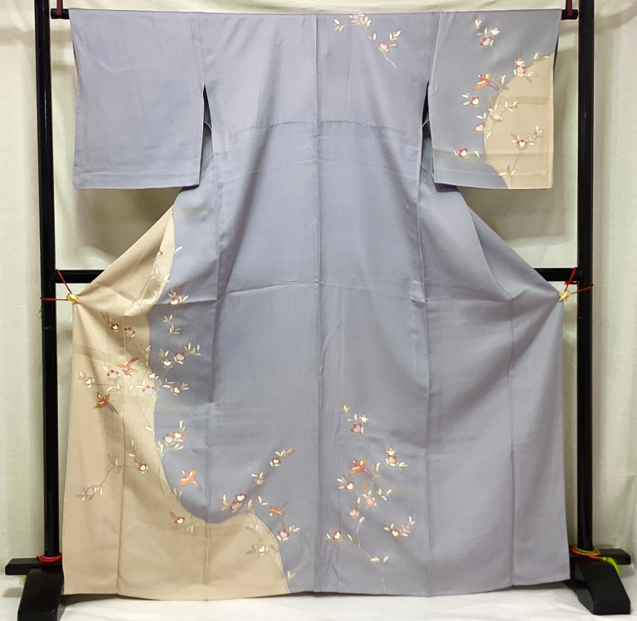 | コメント | 中古の正絹お仕立て上がり訪問着単衣きものです。 紗綾形に京友禅金彩加工せぶ背仕立ての品物です。 使用感少ない未使用に近い綺麗な品物です。 |