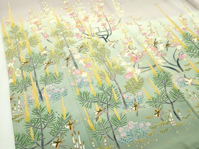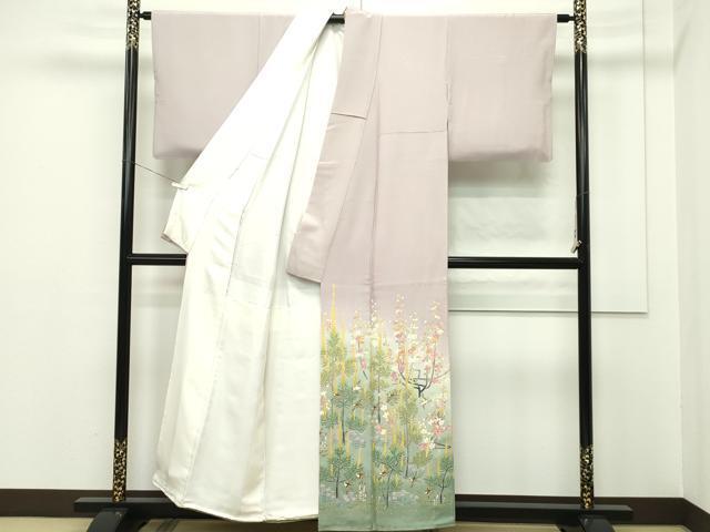 | 【正絹・五つ紋・比翼仕立て】 状態は特に目立ったシミ汚れなどもなく大変良い状態です。 百貫華峰は昭和41年に 加賀友禅の人間国宝である木村雨山に指導を受けます。画家としても活動される百貫華峰が生み出す加賀友禅の作品は 一枚の絵画のように美しく、とても人気が高いです。 今に至るまで、現代美術展や日本現代工芸展、 日展などで数多くの賞を受けています。 大変上質な極上の逸品になります。 お安く出品致しますので、是非この機会にいかがでしょうか?