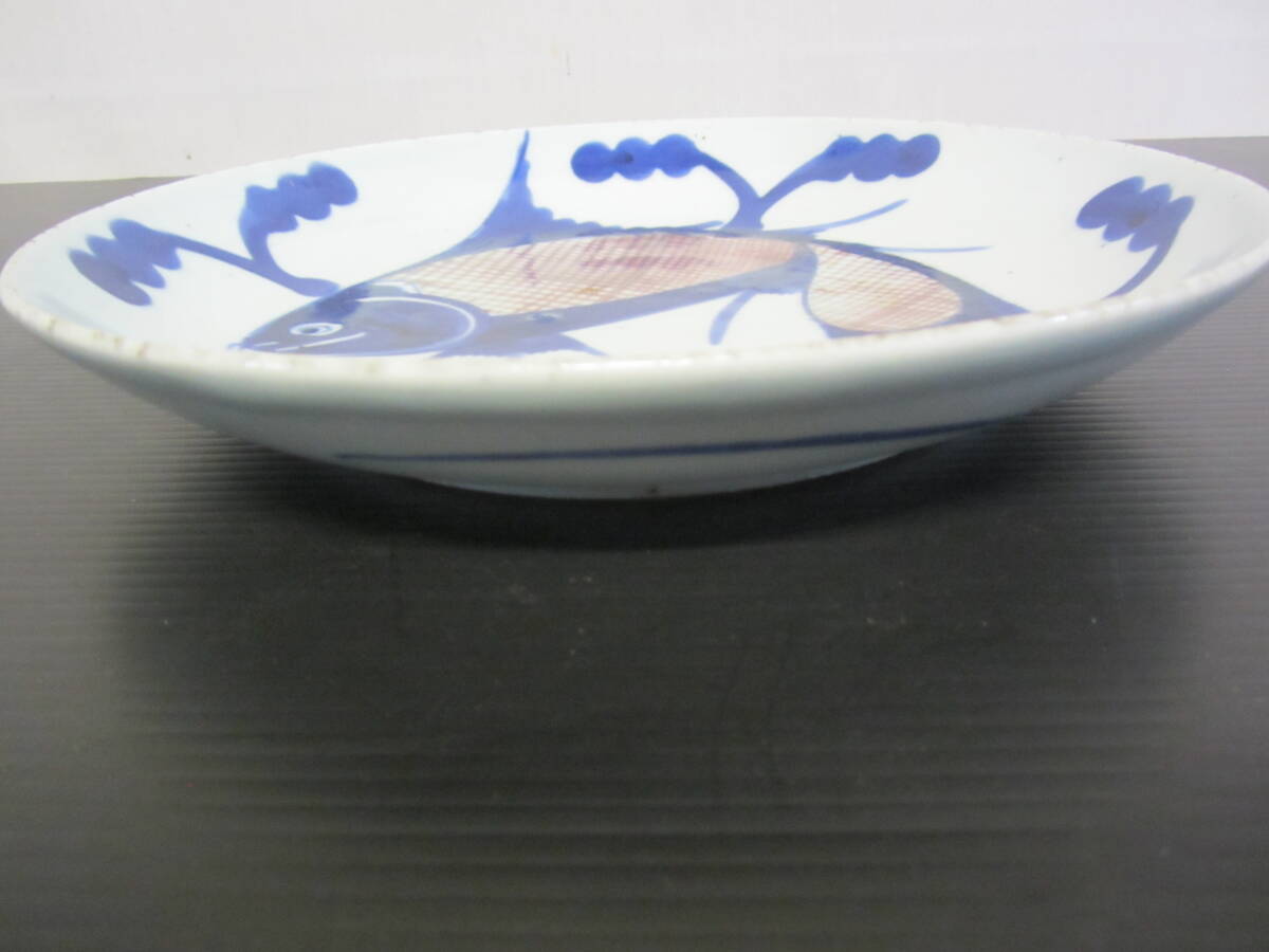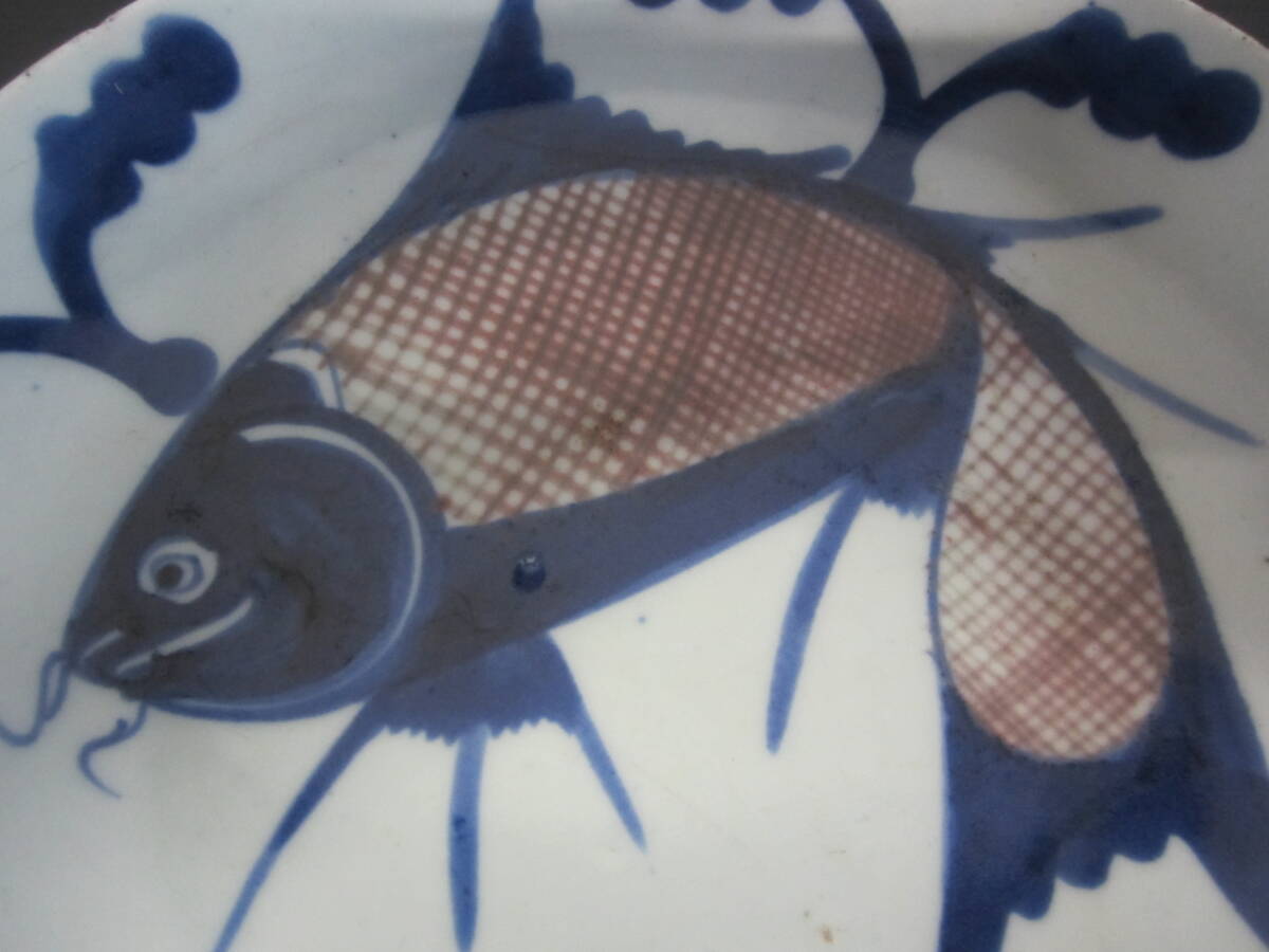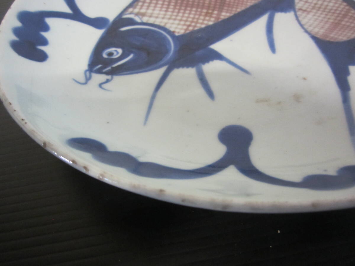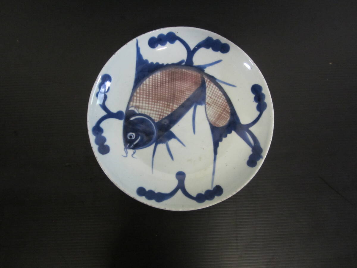 清朝 釉裏紅 魚紋皿 中國清時代 青花 染付 磁器 焼き物