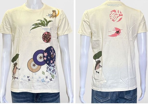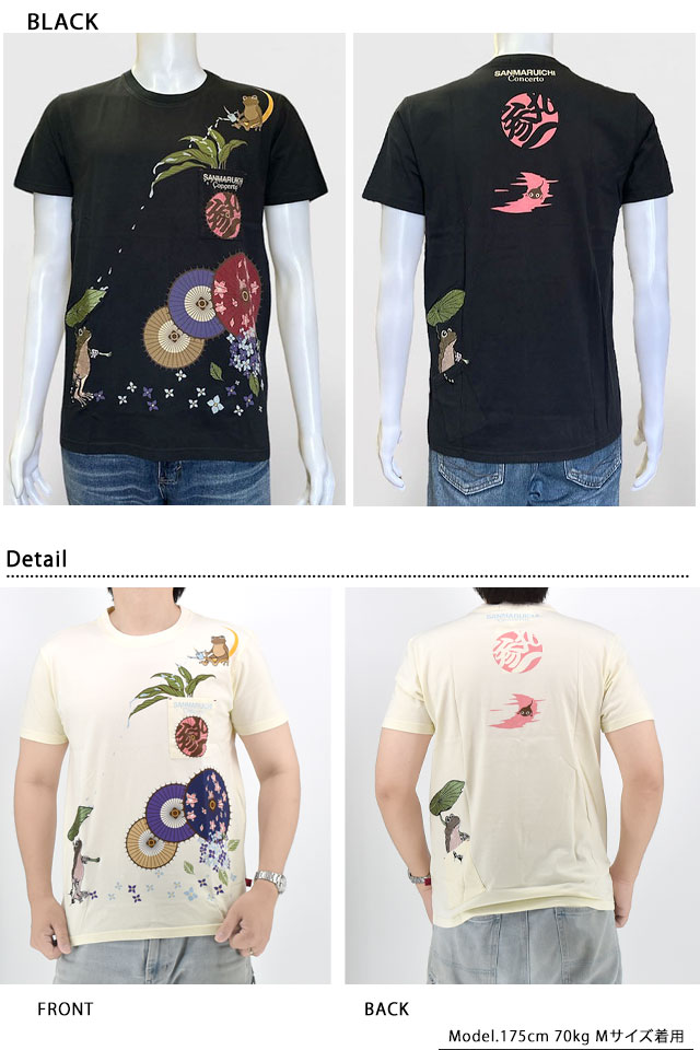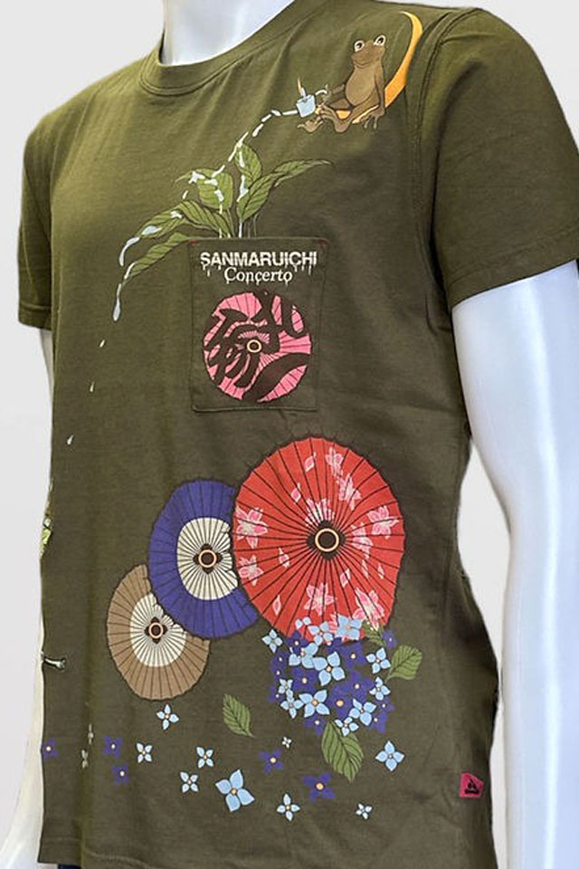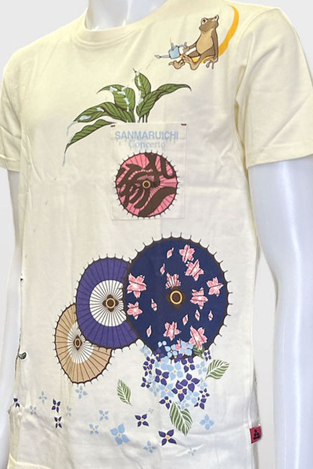 「参丸一」さんから「番傘がほしい蛙半袖Tシャツ(SKY-58019)」のご紹介です。 月の蛙が植木に水をあげると、地上の蛙には雨になって降り注ぎます。 地上の蛙は番傘が欲しいようですが、おたまじゃくしは雨に濡れて喜んでいます。 フロントではポケットで雨宿りをしていた蛙が、雨が上がった背中側ではポケットから出てきて空の様子を見ています。 頭上には、参丸一の太陽が見えてきました。 でも不思議。 水面に映るのはなぜか月なのです。 ストーリー性のある、どこか幻想的な一枚に仕上がりました。 ボディーには、柔らかな肌触りのTシャツ生地を採用しました。 | |||||||||||||||||||||||||