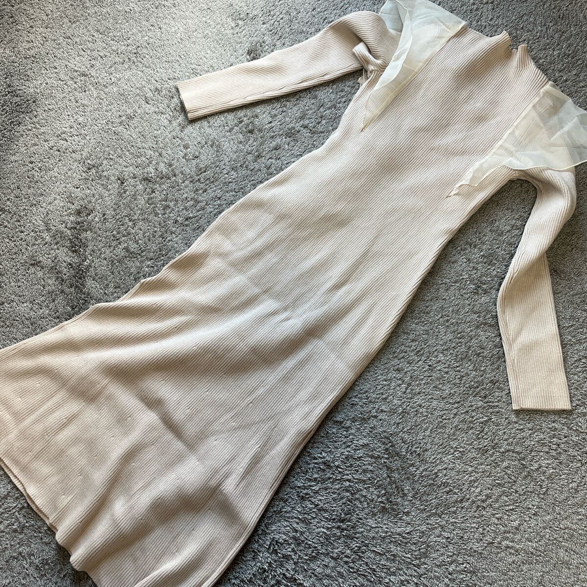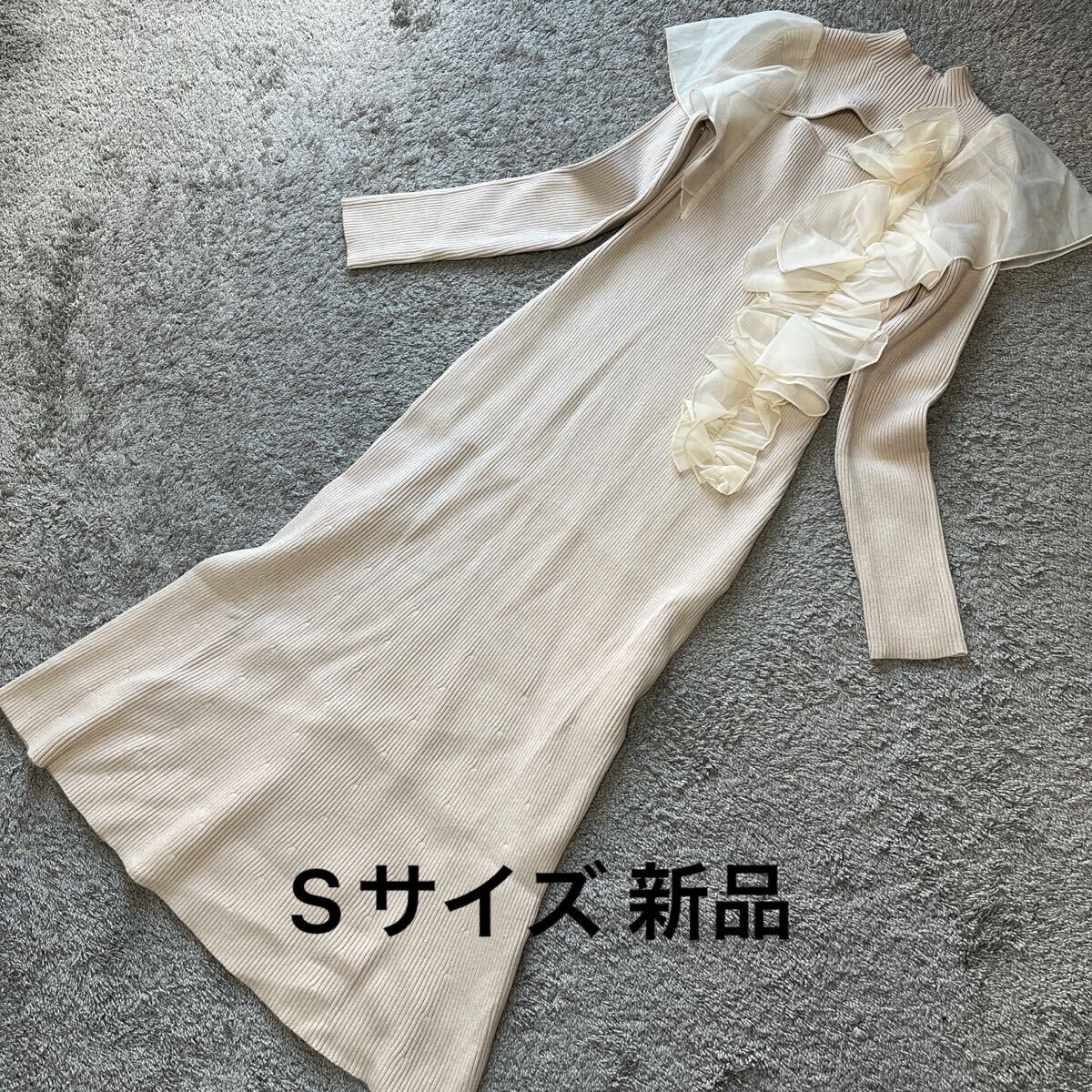| 異素材コサージュニットロングワンピースアイボリーです。 背面に小さな穴があいています。 未使用ですがタグはついていません。 自宅保存なので細かい事を気になさる方はご入札を避けて下さいね♪ サイズはSサイズです。 平置きでバスト37センチ 着丈120センチ 素人なので多少の差はご了承ください。 品質はポリエステル52% レーヨン36% ナイロン12% 布帛 ポリエステル100%です。 実際のお色と画像は光の具合により多少異なる場合があります。 48時間以内にご連絡いただける方、 お取り置きを含めてもご入金を 簡単決済期限以内にしていただける方のご入札をお願いいたします。 | |||