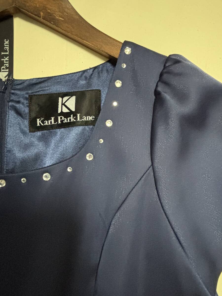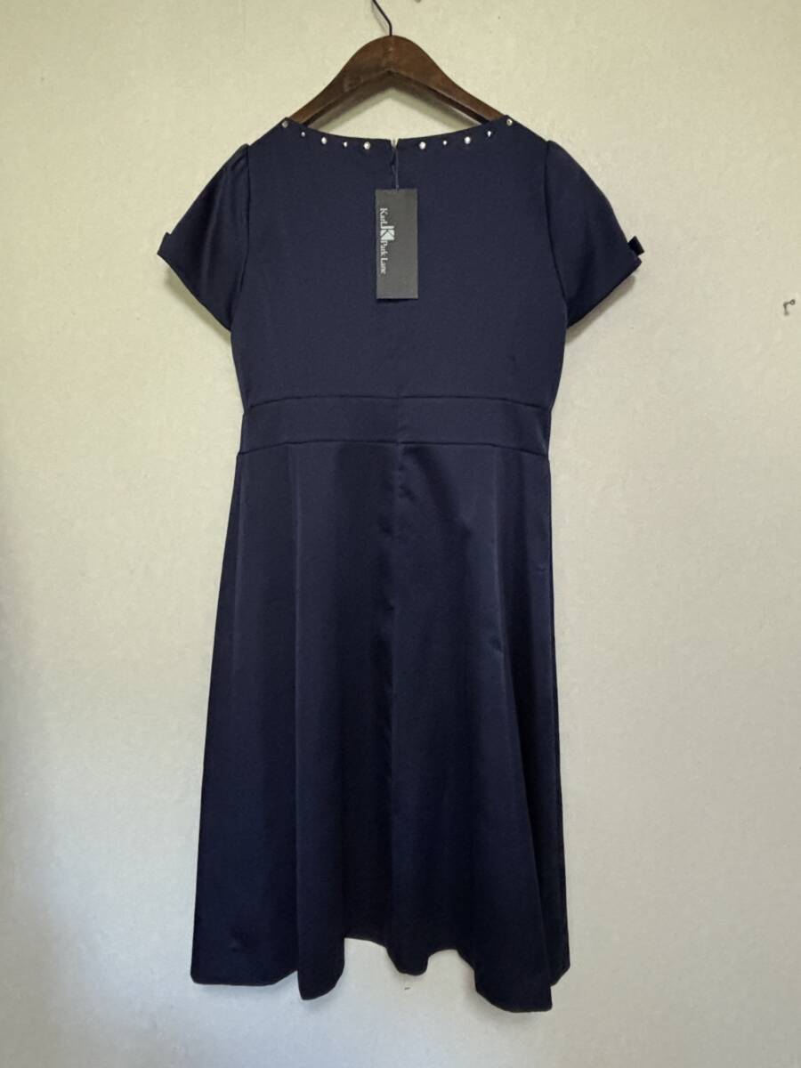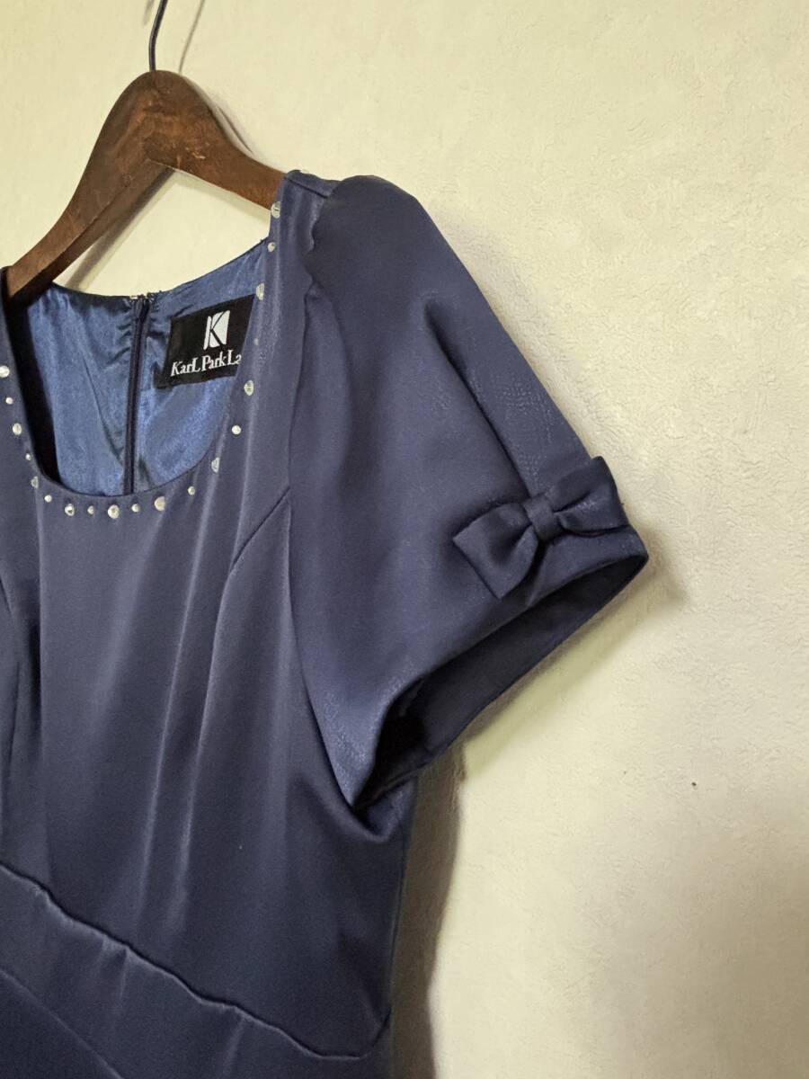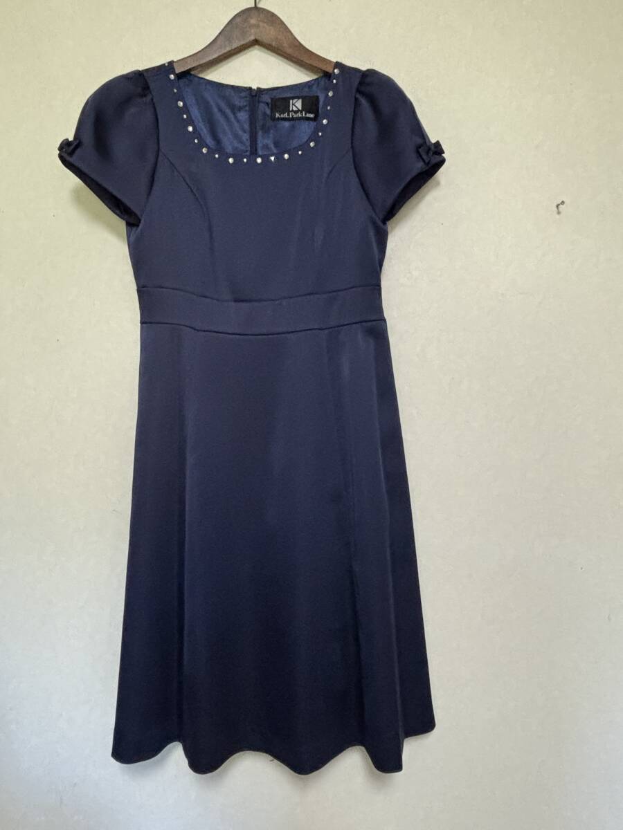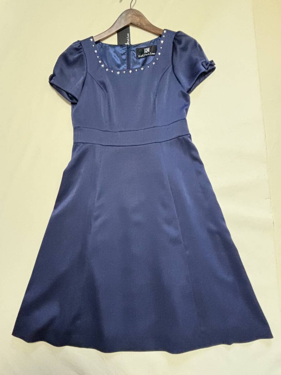 ■ 特徴:薄手のワンピース。春夏用。色は微光沢のある濃紺。ビジューや袖先のリボンがかわいいです