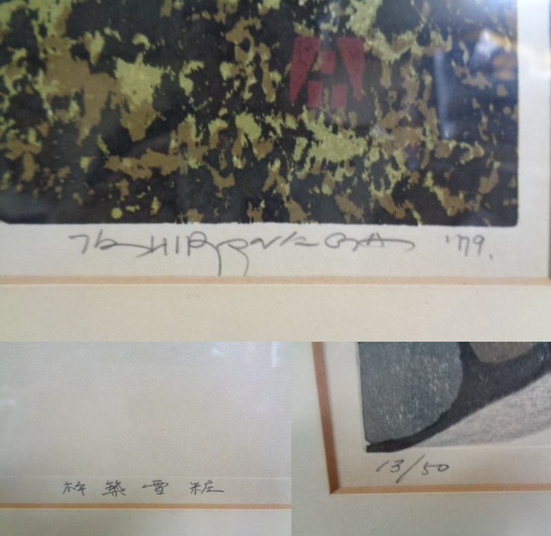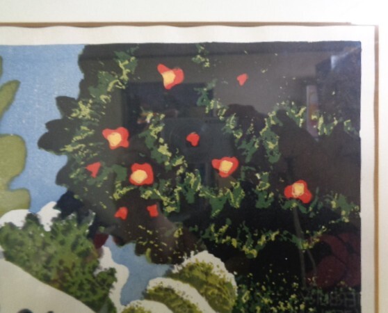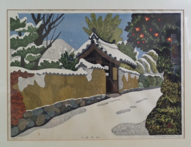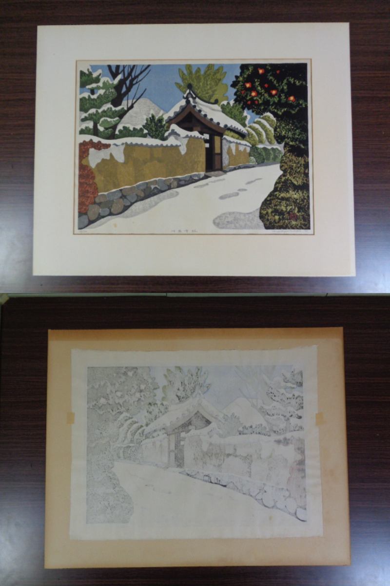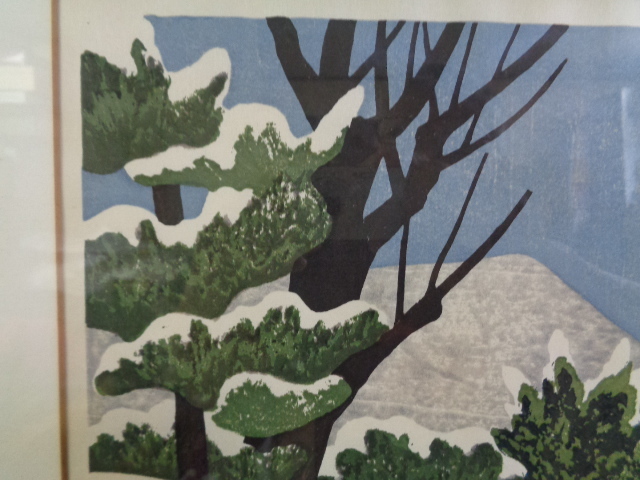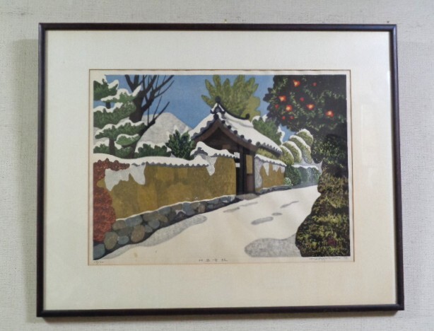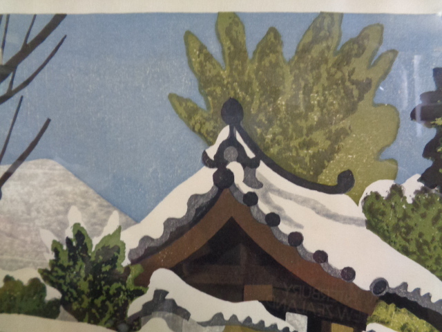 【真作】廣長威彦「杵築雪粧 」木版画 1979年作 額サイズ約、縦 60cm 横75cm