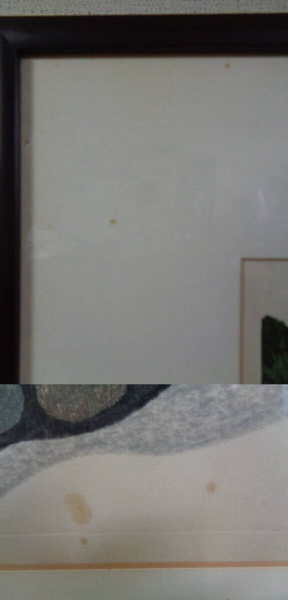 作品下部、マットにしみ汚れ(画像8)、額縁廻りに、擦れキズ(画像9)等有ります。