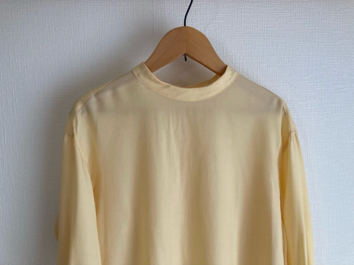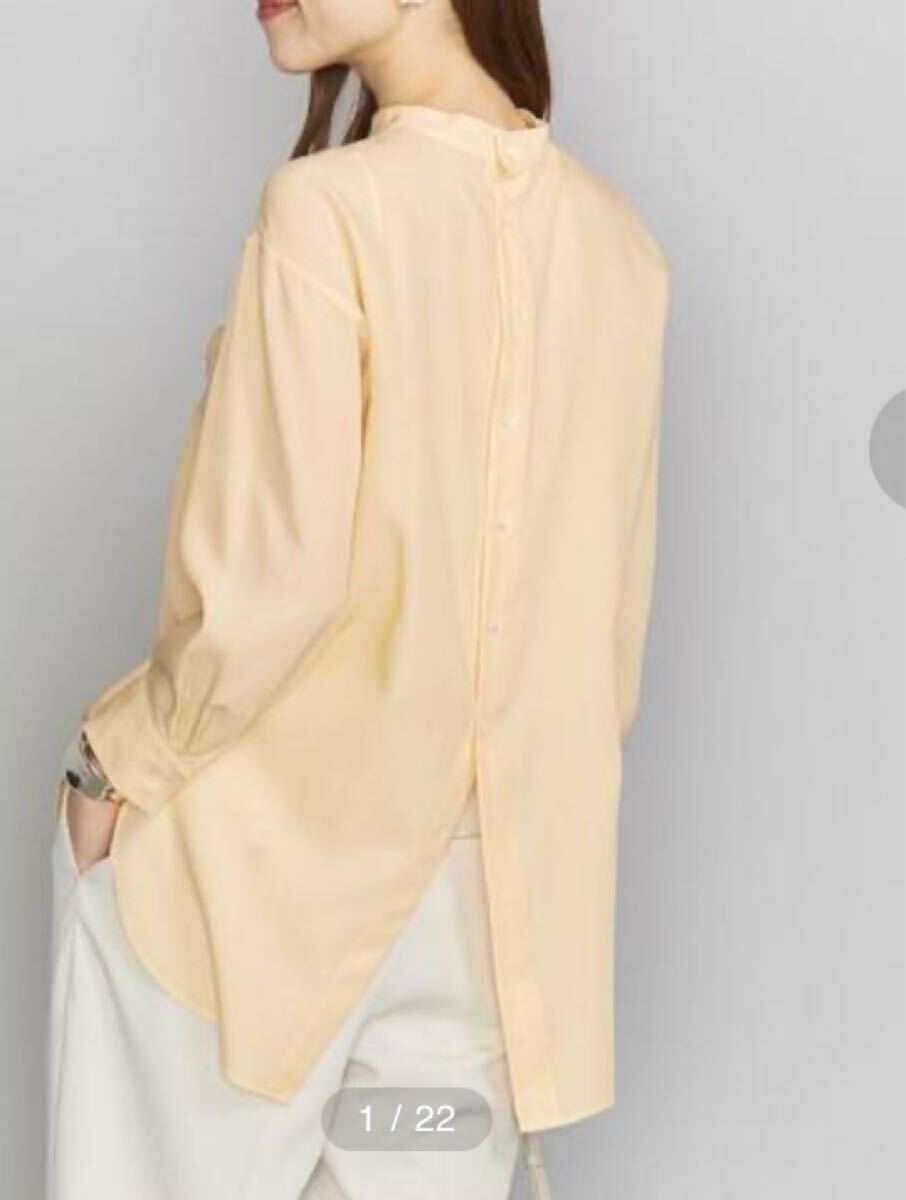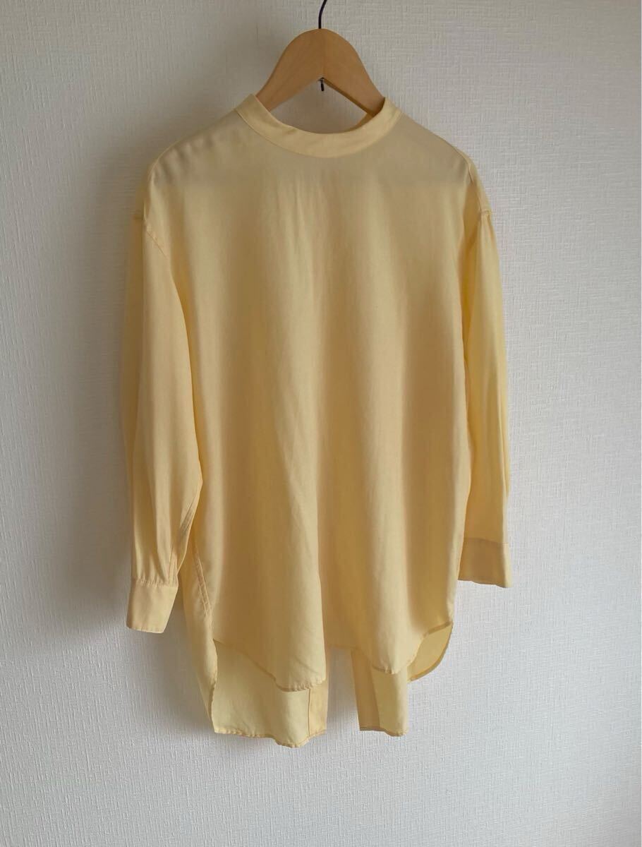 とろみのあるブロード生地でお作りしたプルオーバーブラウス。後ろ身頃にはリズミカルにボタンを配し、やや長めに入れたスリットが軽やかな印象を与えます。クラシカルなバンドカラーにバックコンシャスなデザインを組み合わせることで存在感のある仕上がりに。一枚着としてはもちろん、シアーなニット等とレイヤードしたトレンド感のある着こなしもおすすめです。
