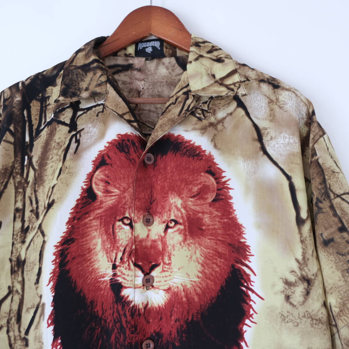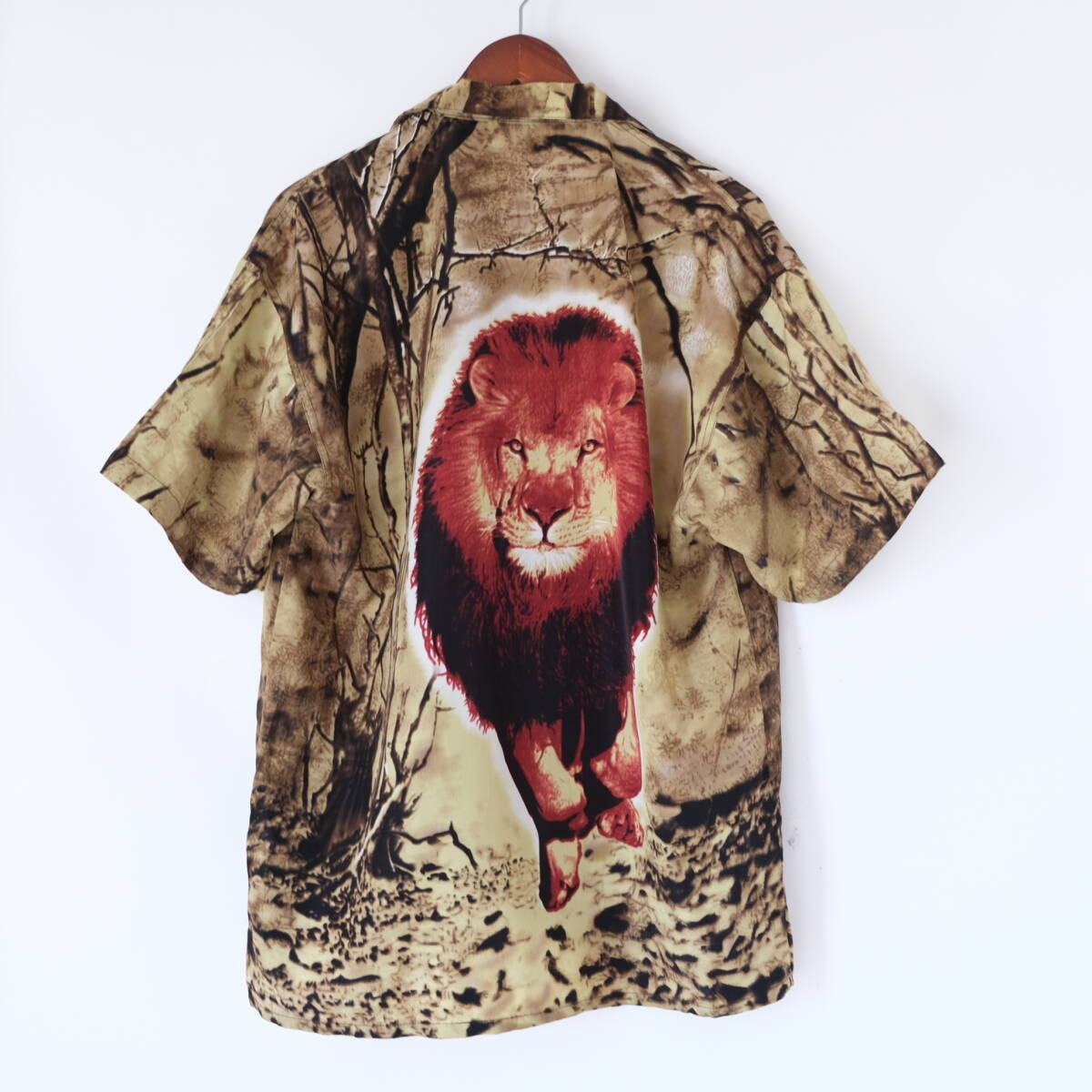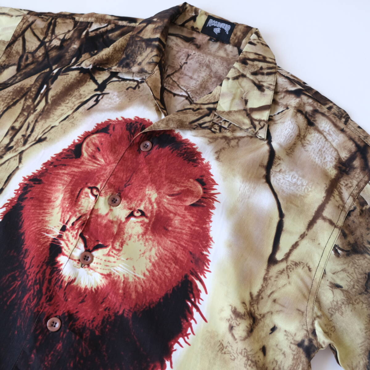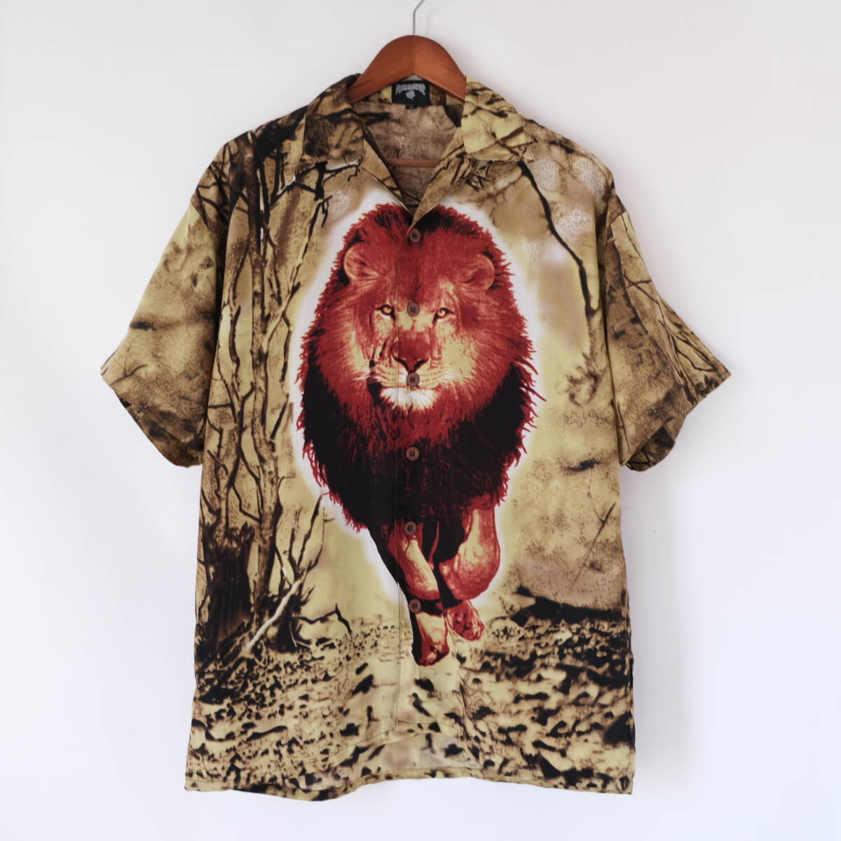 【 ROCAWEAR 】ロカウェア ライオン プリント 柄 オープンカラー 半袖シャツ / S / 開襟 ボックス アロハ