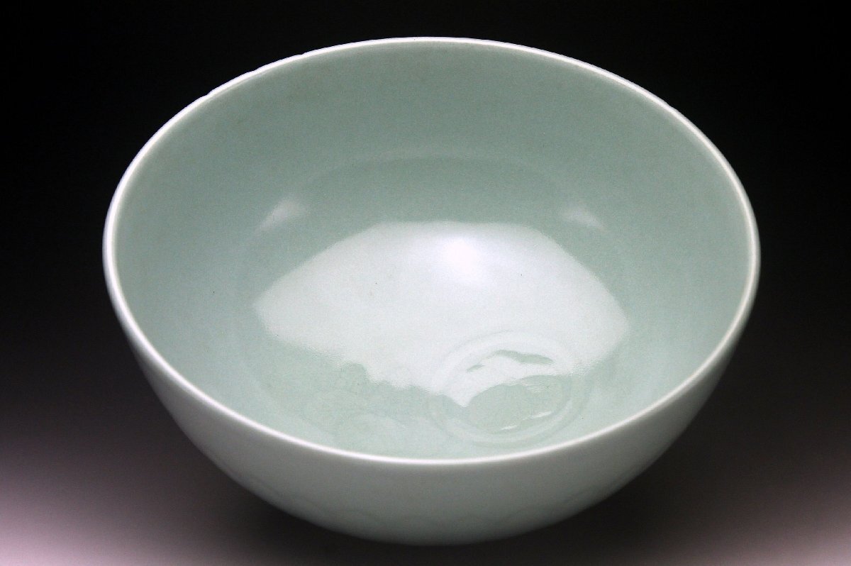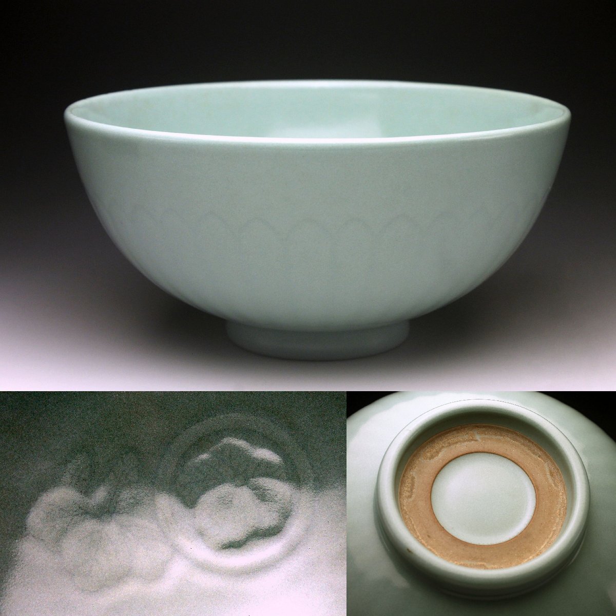 【余韻】 時代物 伊万里 桐に菊弁文 青磁 大鉢★骨董品 無傷美品<同梱可>