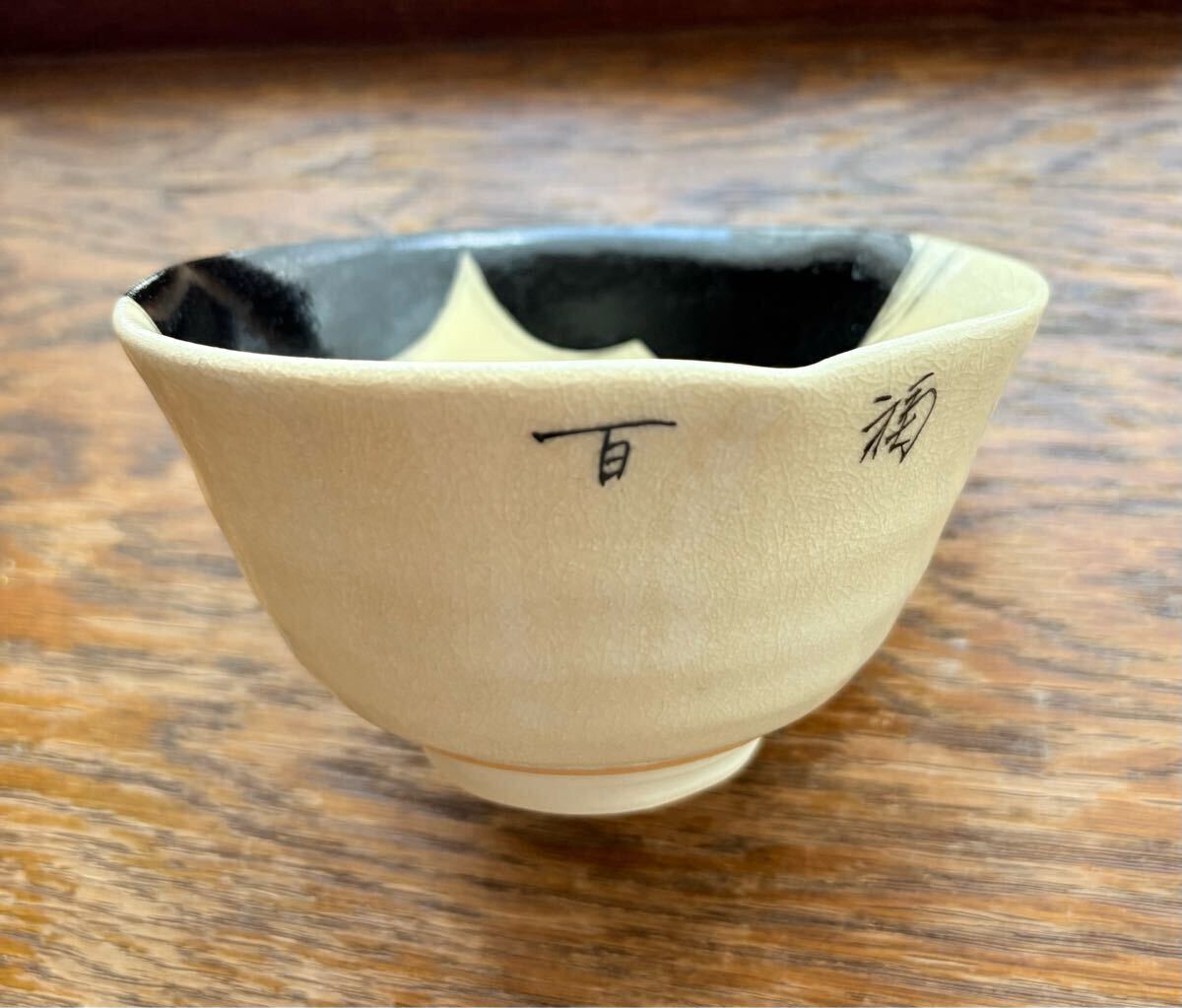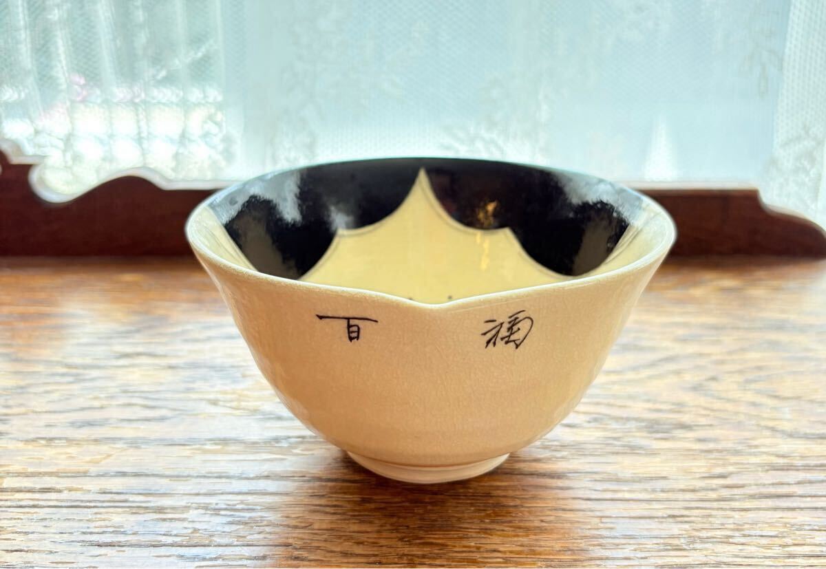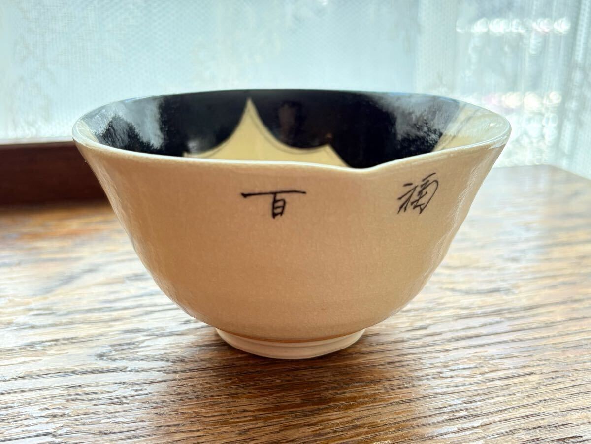 京焼 百福 横田鳳山 お抹茶碗 お多福 縁起 吉祥 清水焼 未使用自宅保管品 茶碗 茶道具 お福 抹茶碗