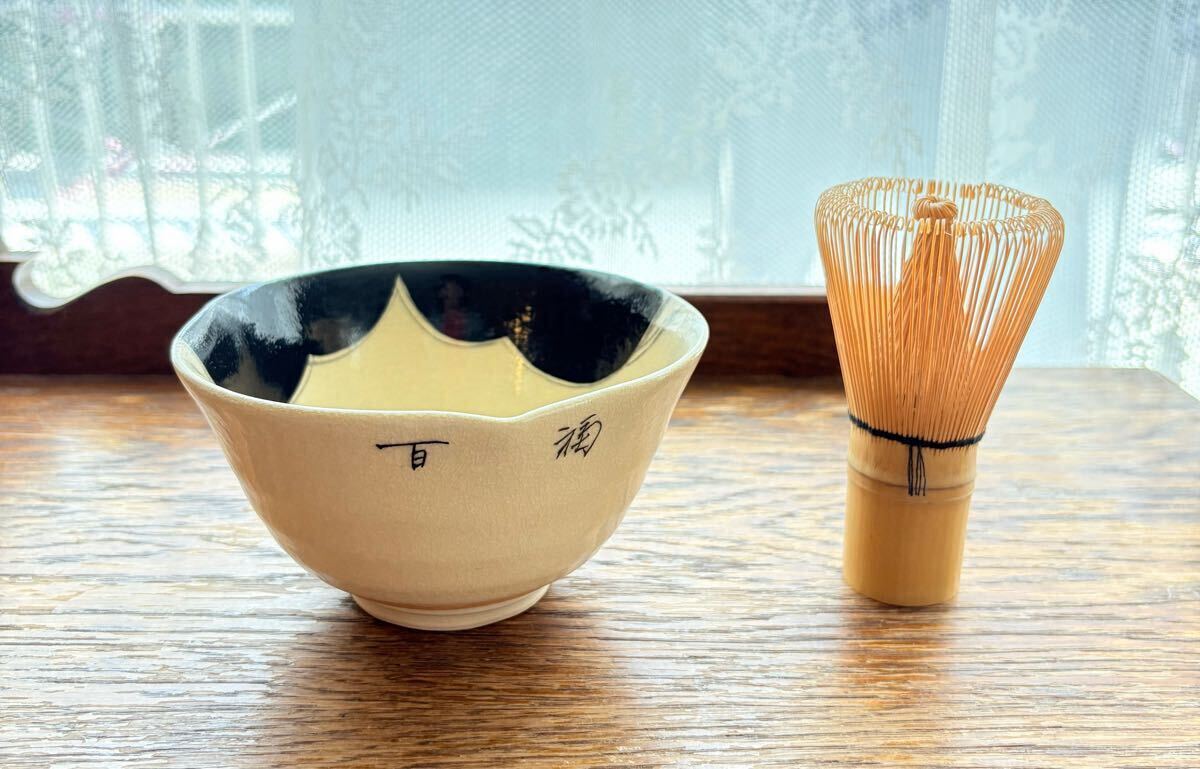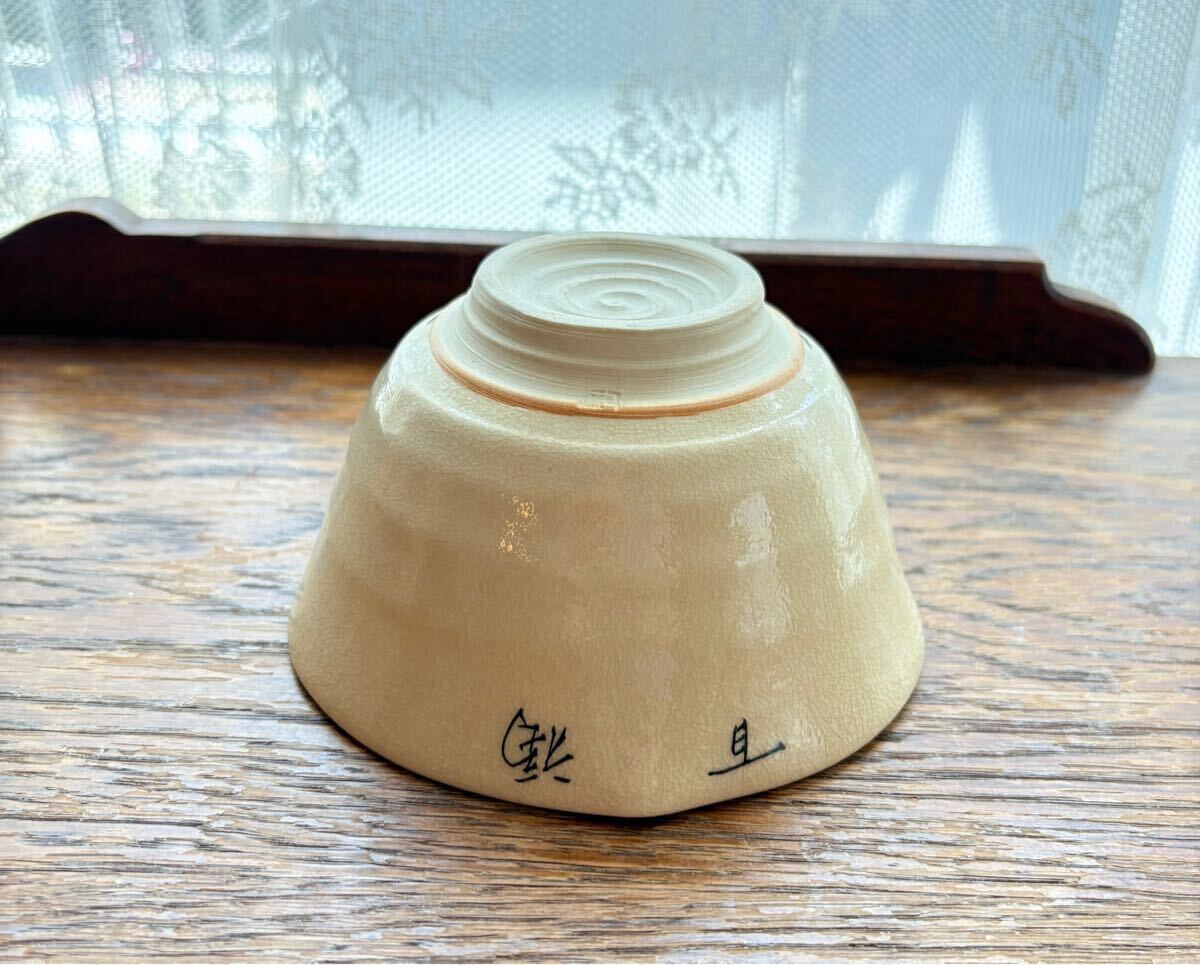 見込みにお福さんが描かれた縁起の良い抹茶碗です。