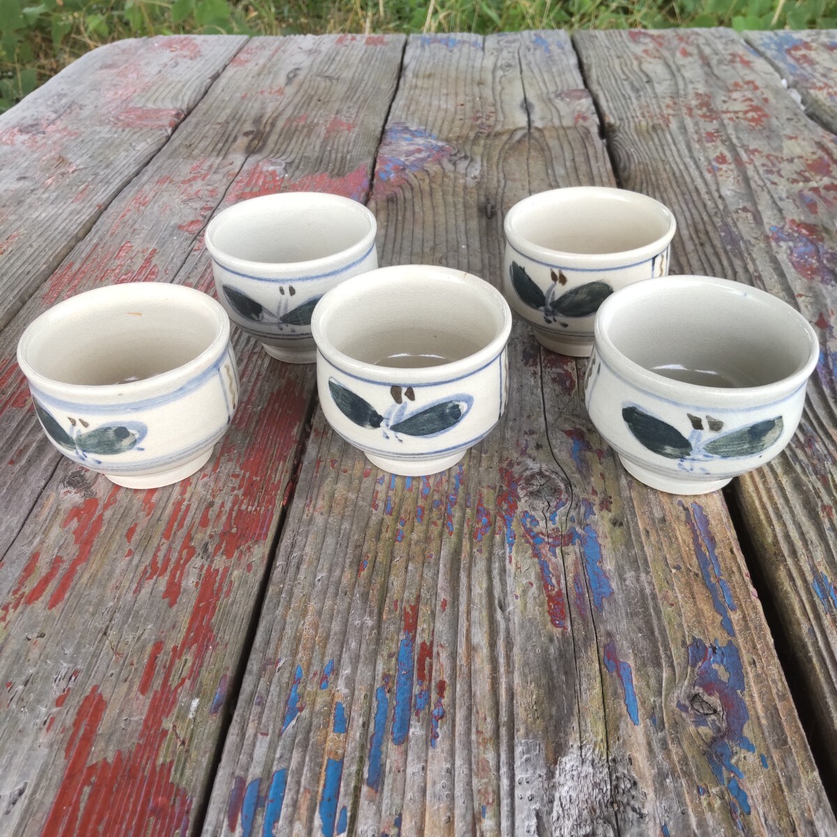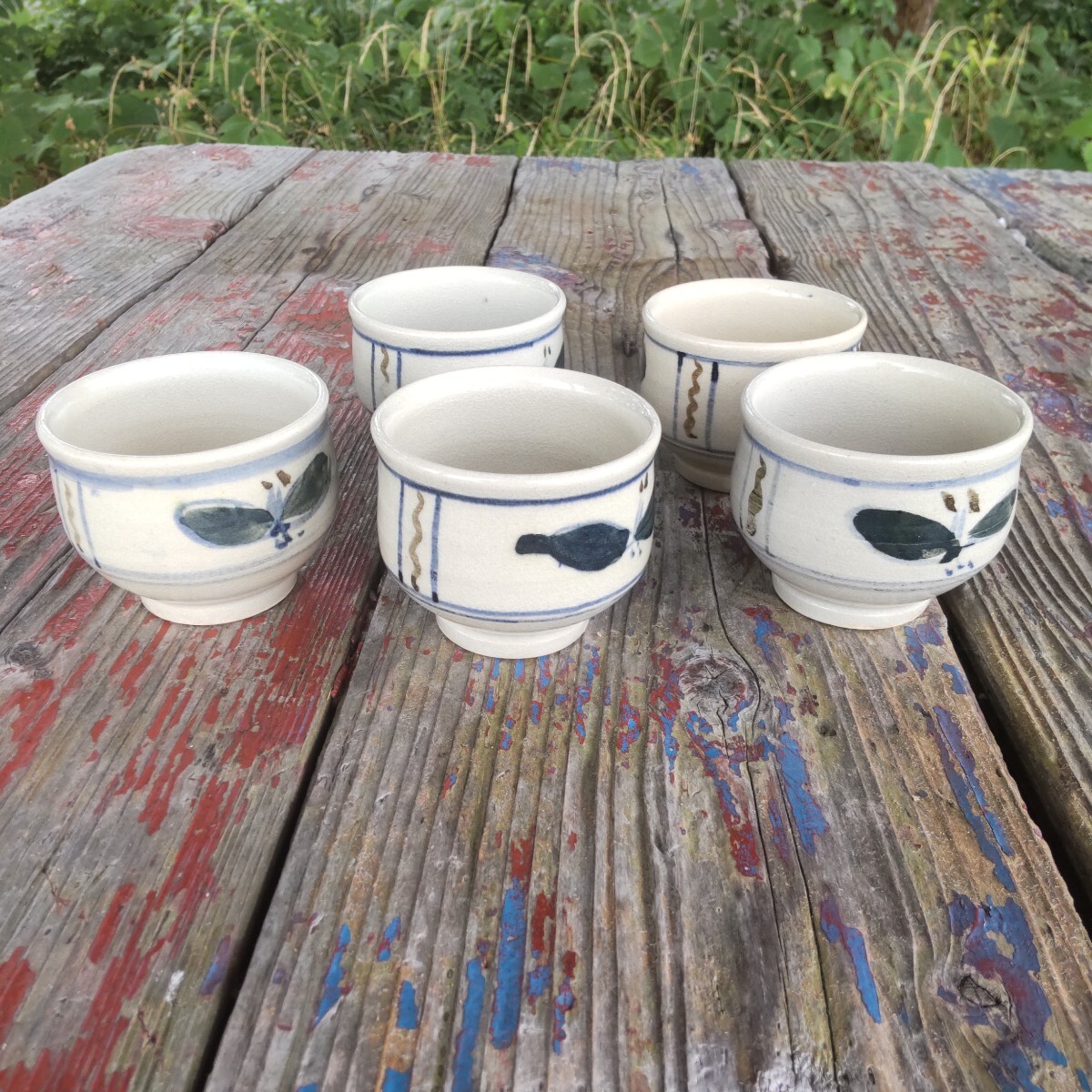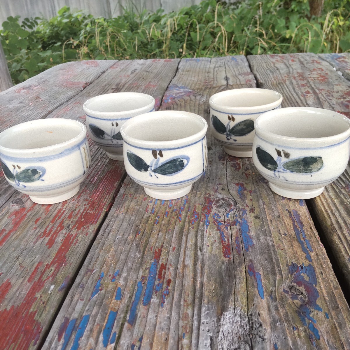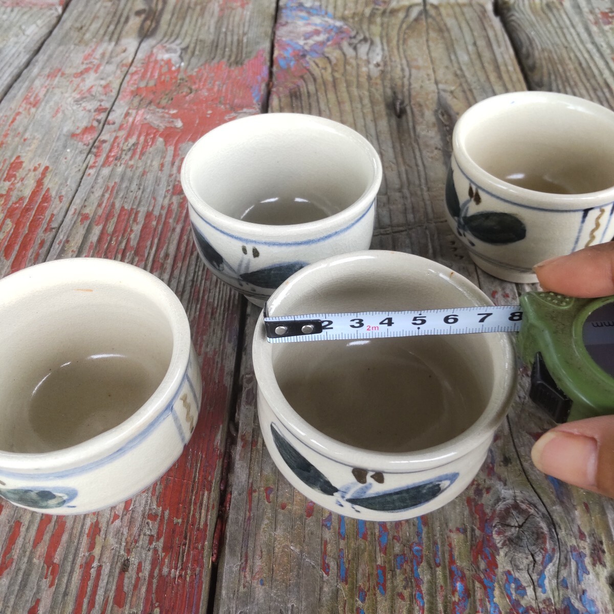 昔の人の作品です。が、写真6を見られても分かる通り使用感ありません。綺麗です。高台にも汚れ有りません(写真6)。厚手で丈夫な物に成ります熱い物や冷たい物が、直接感じられず持ち易い商品に成ります。昔の物ですので、おっとりとした、レトロな感じで、今には無い落ち着いたデザインです。トンボが飛んでいる様子が描かれています(下向きに)。手作りですので、1つずつ微妙に描かれ方が違う物に成ります。アイスクリームカップ蕎麦猪口代わりにされても。当方知識が有りません。お好きな方インテリアに、日常使いに。全体的に薄めの細かい貫入入りです。