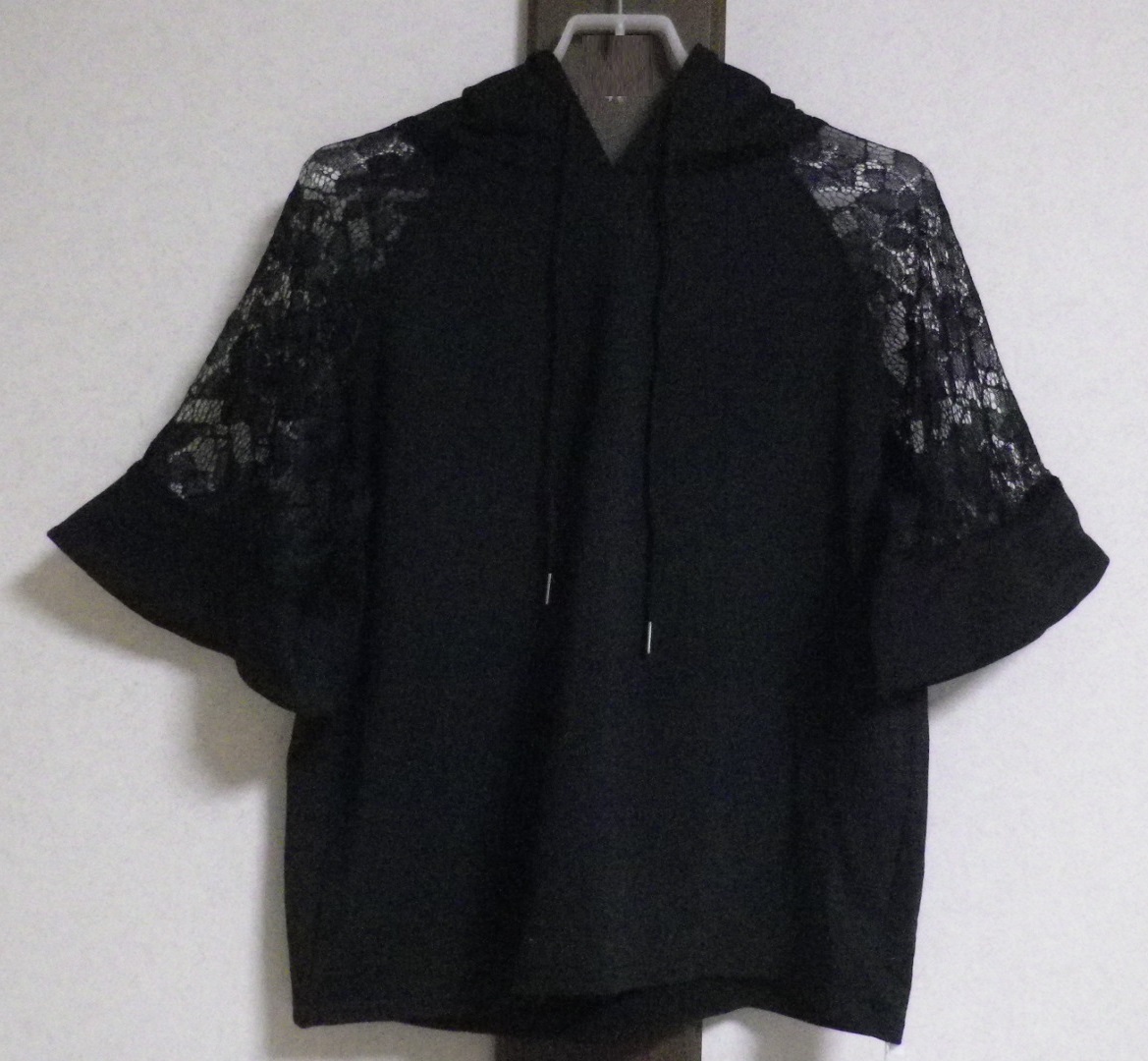 ●レース フーディー 黒色 ブラック / Asian L