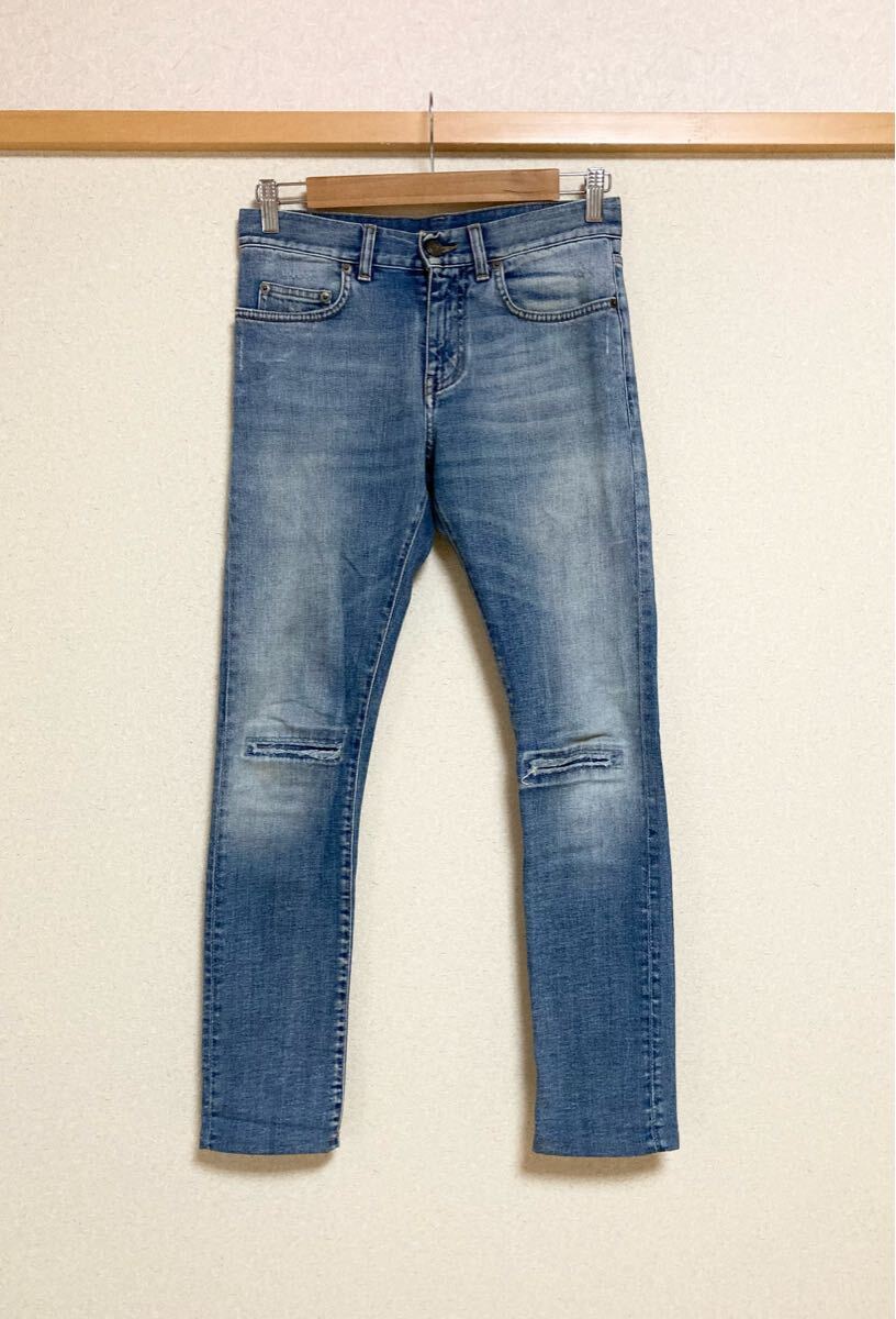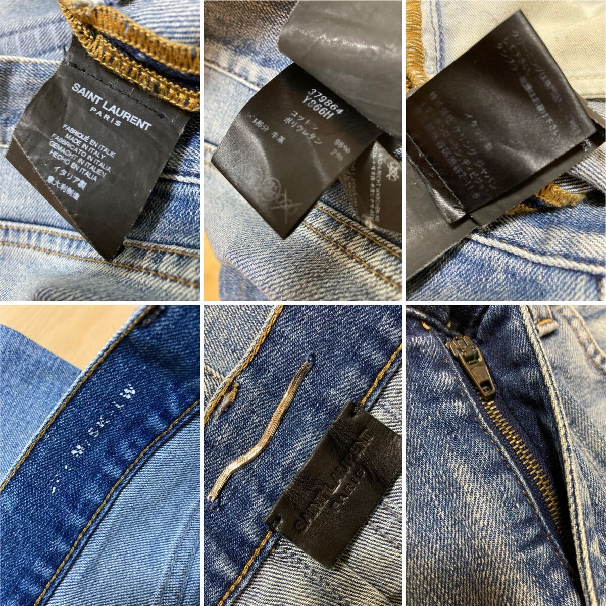 [SAINT LAURENT PARIS] 15SS リペア加工 ストレッチ インディゴデニムパンツ 27 イタリア製 379864 Y866H サンローランパリ