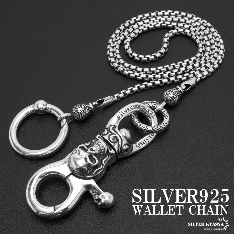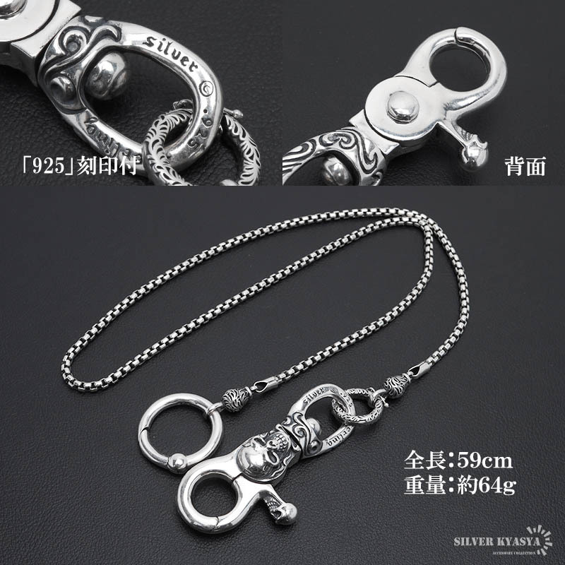 シルバー925 ウォレットチェーン ベネチアンチェーン スカル ドクロ 唐草 燻仕上げ メンズ クリップ 財布紐 重厚 財布 鎖