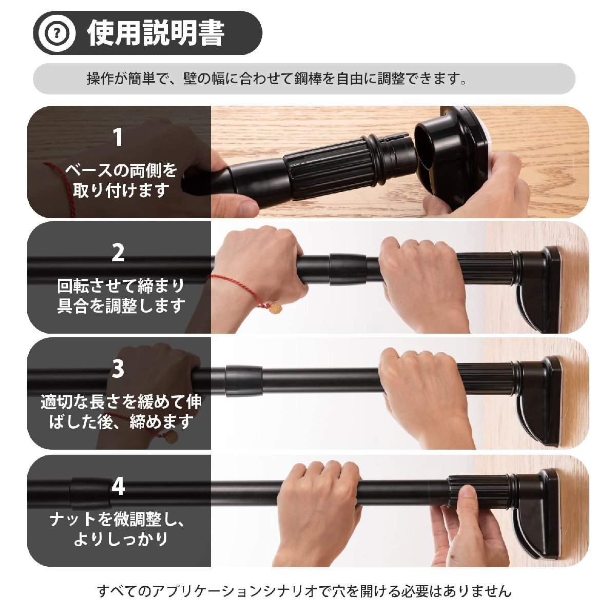 【工具不要簡単取り付ける】パンチを使わず、突っ張るだけで簡単に取り付けられます。壁に穴がある心配もなく、壁に痕跡も残さないので、突っ張り棒を安心に取り付けて、。突っ張り棒しっかり固定できる。