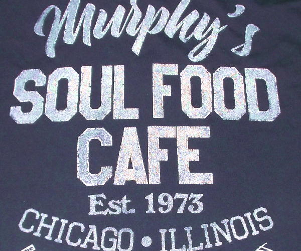 ジョン・ベルーシとダン・エイクロイド主演、ブルースやR&B、ソウルミュージックなどの黒人音楽に対するオマージュが込められたスラップスティックコメディ、「ブルースブラザース」のTシャツ「SOUL FOOD CAFE MENS LIGHTWEIGHT TEE」です。