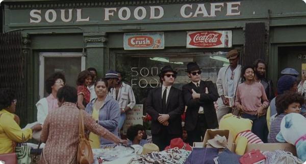 神からの啓示を受けたJAKE & ELWOODの二人が、ギタリストのマット・マーフィーを引き抜きに訪れる「マーフィーのソウル フード カフェ」(アレサ・フランクリンのシンクのシーン)のデザイン!