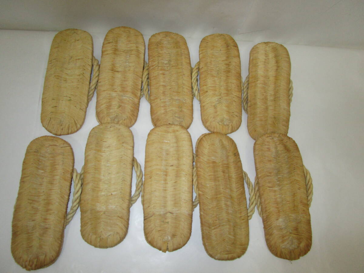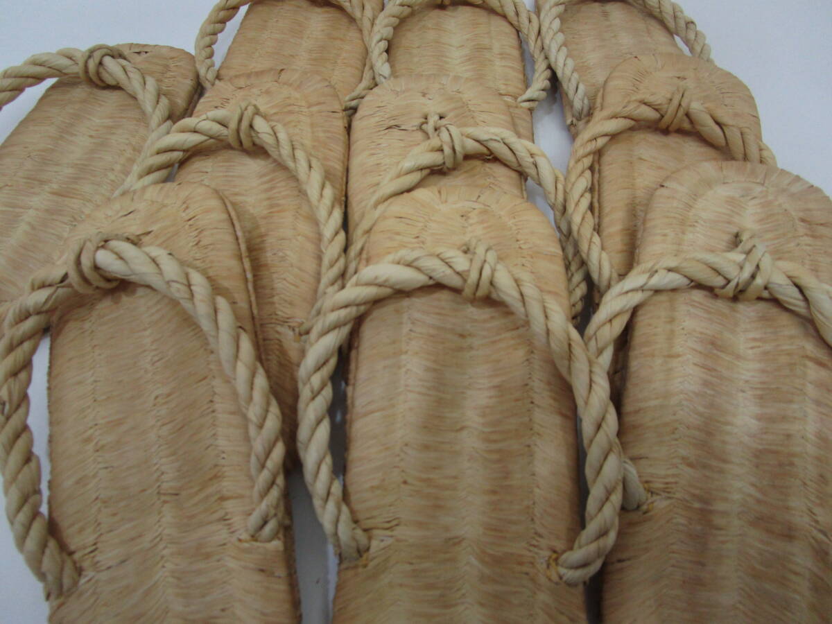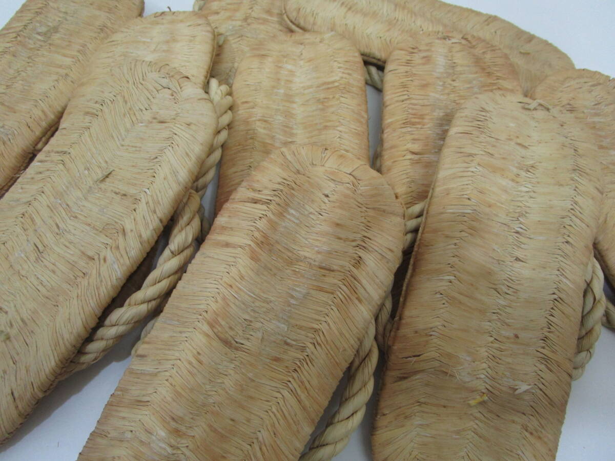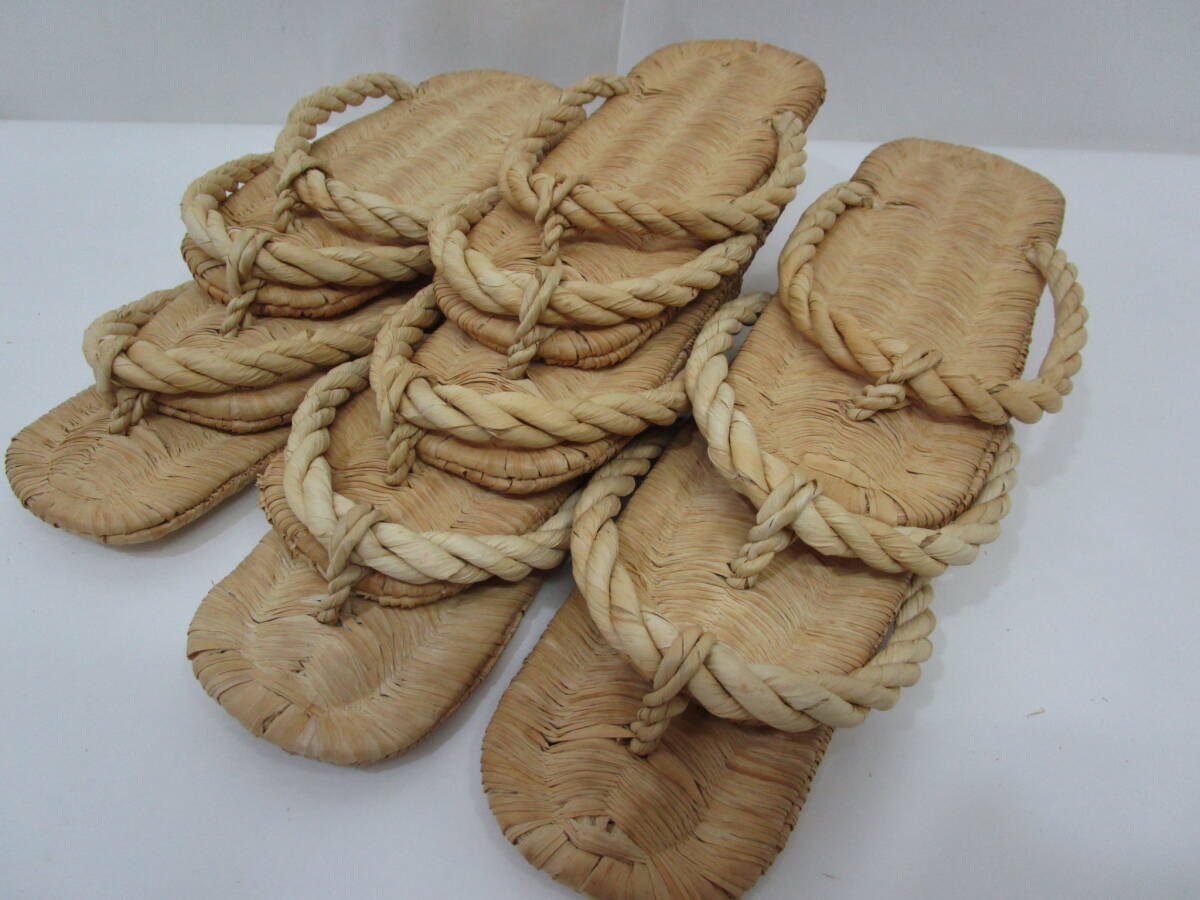 中古露地道具!  竹皮編の 露地草履 五足一組です。 サイズ:(標準タイプ)長さ約23.5cm×巾9cm  使用に因る擦れが有ります。泥をふき取り丁寧に扱われています。 箱無。  露地飾りにも! どうぞ宜しく。
