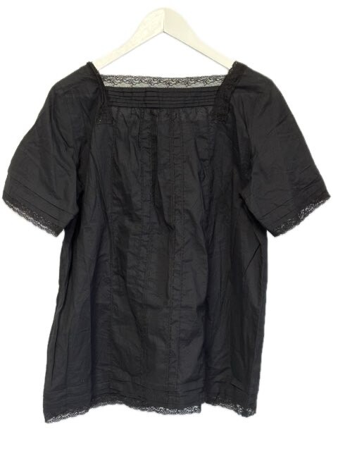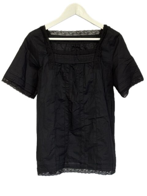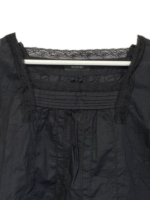 インゲボルグ INGEBORG ブラウス 11 レース 切替 スクエアネック コットン ブラック 黒 半袖 トップス レディース