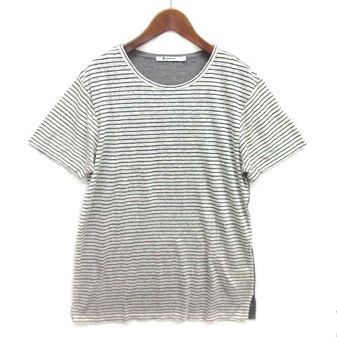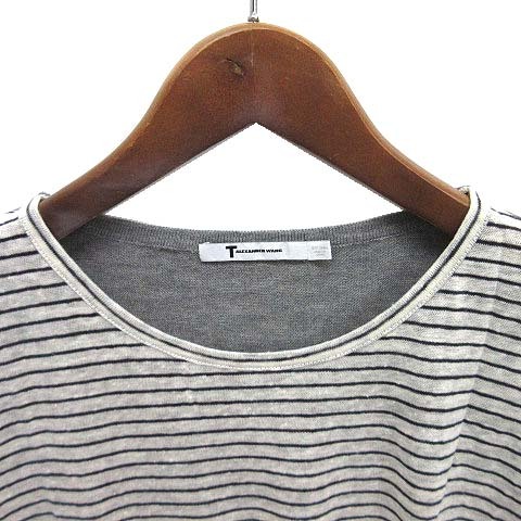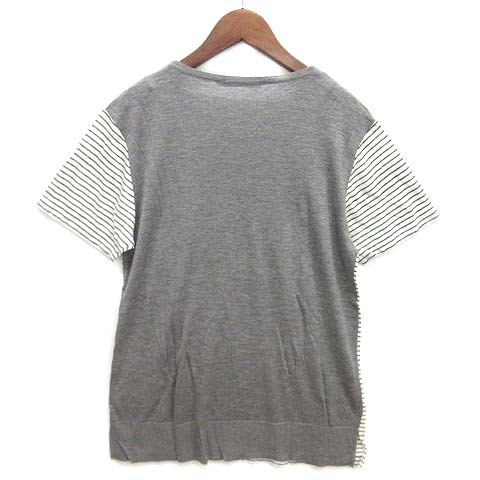アレキサンダーワン ALEXANDER WANG リネン サマーニット フロントボーダー 切替 カットソー ニットソー 半袖 オフホワイト グレー S
