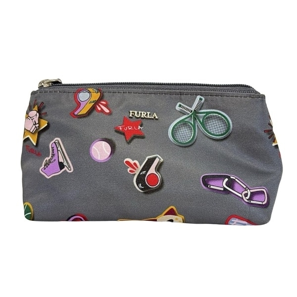 フルラ FURLA - ダークグレー×パープル×マルチ 美品 ポーチ