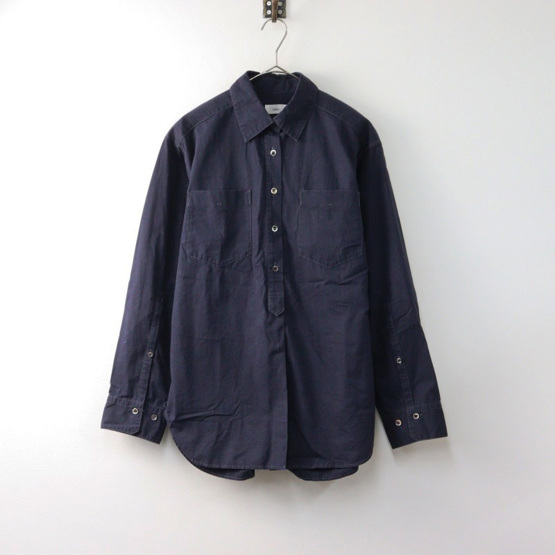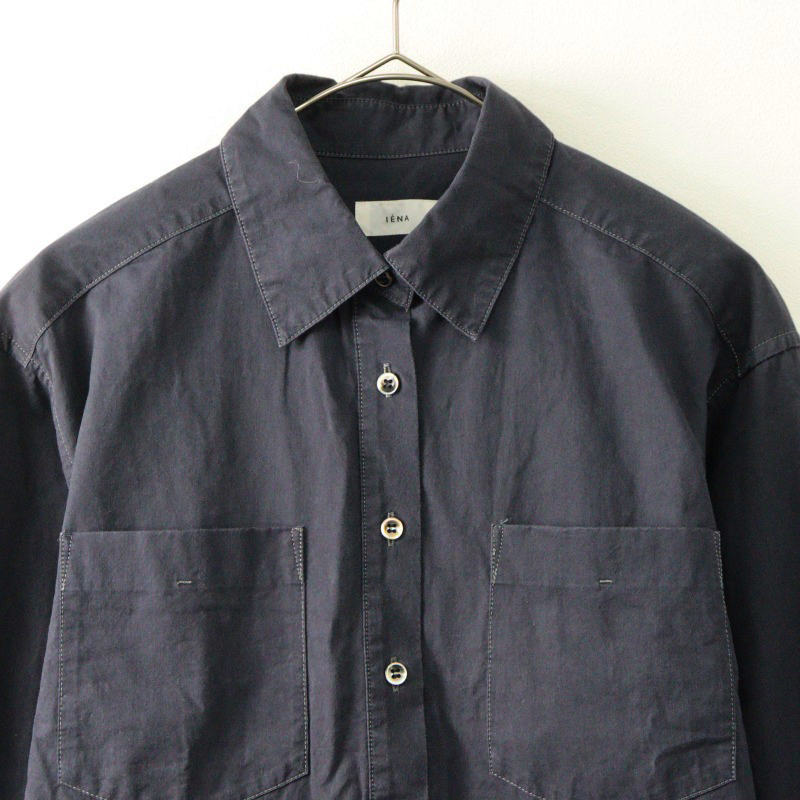 2022AW イエナ IENA COTTON BOUNCE シャツ /ネイビー ポケット コットン バウンス 長袖 スリット カットソー【2400014537901】