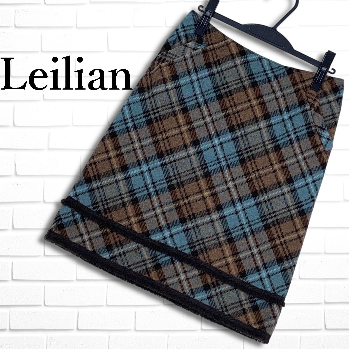 ◆美品◆ Leilian レリアン ウール 100% チェック スカート 茶 × 青 ブラウン ブルー レディース 9 ◆日本製 送料無料◆ 3895G◇