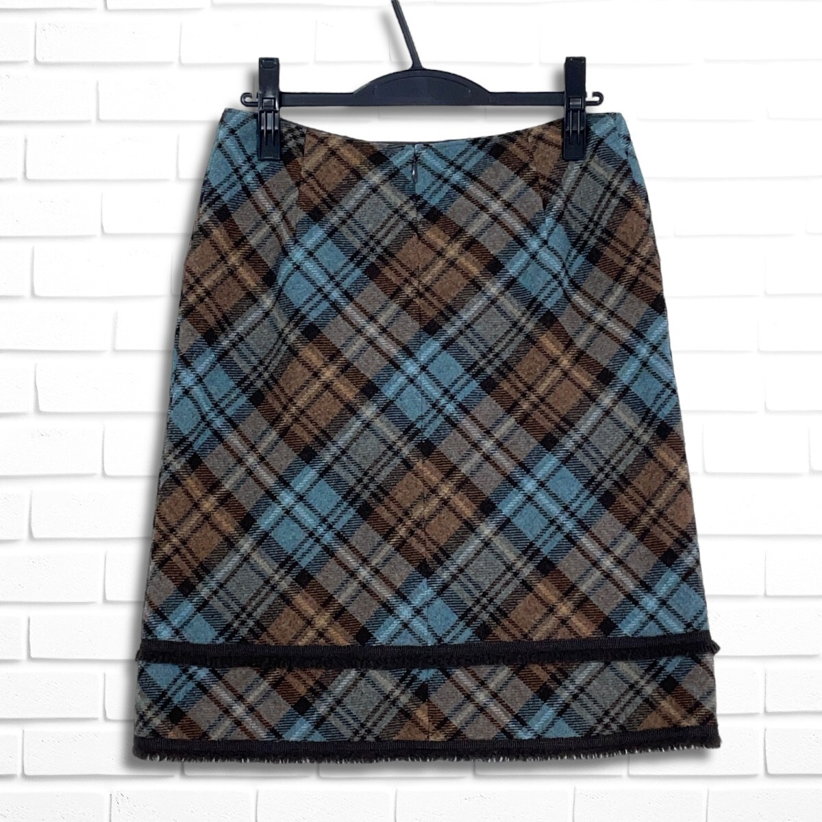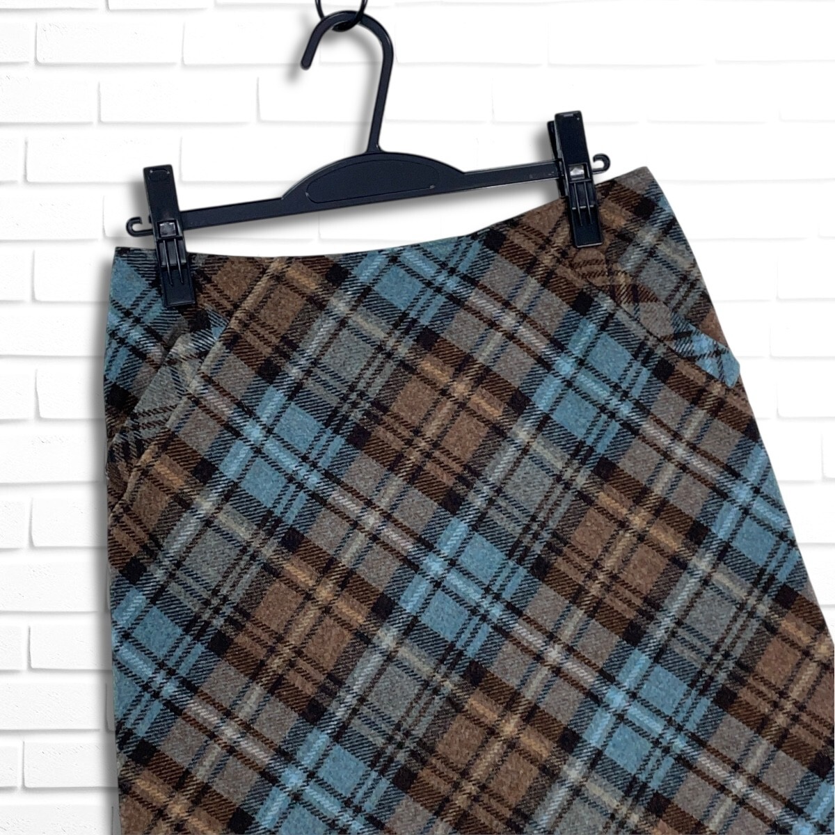 ◆美品◆ Leilian レリアン ウール 100% チェック スカート 茶 × 青 ブラウン ブルー レディース 9 ◆日本製 送料無料◆ 3895G◇