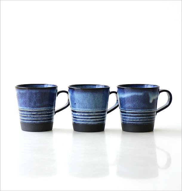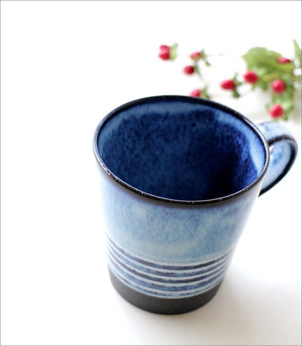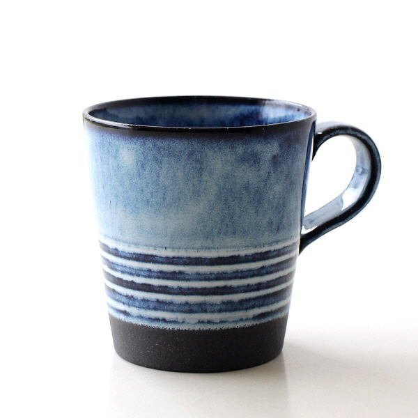 インディゴブルーの釉薬の濃淡が印象的な 目にも楽しいマグカップは 下半分に入ったボーダーや マットブラックの底面がアクセントになった メンズライクでスタイリッシュなデザイン コーヒーがとってもよく似合いそうで こだわりの一杯をより美味しくいただけそうです 商品名 : キッタチボーダーマグ 商品番号 : ksn6667 全体サイズ(cm) : 幅12×奥行9×高さ9.3 カップサイズ : 口径8.5×深さ8 重量 : 210g 内容量(9分目) : 324cc 材質 : 陶器 使用方法 : 電子レンジ)〇 食洗機)〇 オーブン)× 生産国 : 日本 (美濃) ※食器洗浄機内に設置する際は、器同士がぶつかると欠けやすい性質があります為、十分にご注意ください ※陶器の裏面は多少ざらざらとしているためテーブル等の擦り傷にご注意ください -陶器(土物)の特性とお願い- 土物は同じ技法、同じ窯で焼成しても土や釉薬に含まれる天然鉱物などの影響や天候で焼き上がりは微妙に異なります。工業製品のように同一の物になる事はありません。手作りの不均一性、窯変、釉薬の細かいヒビ(貫入)や垂れ等は、製造元より土物の特性として良品の扱いとなります。ご理解頂きお買い求めくださいますようお願い申し上げます |