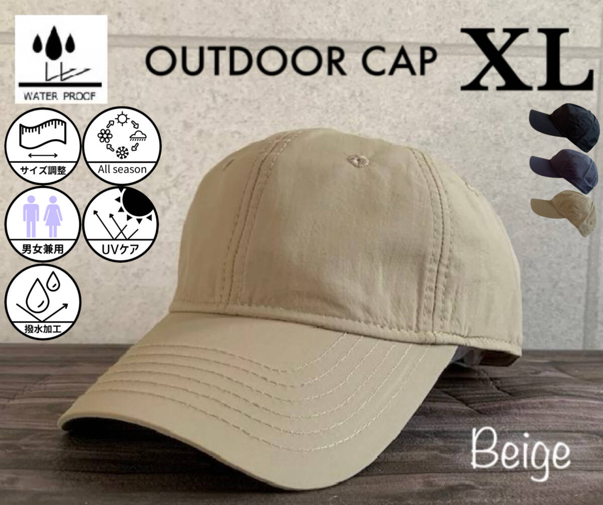 帽子 BIG 大きい L XL サイズ 撥水 キャップ 深め アウトドア オールシーズン メンズ レディース CAP 無地 男女兼用 ベージュ