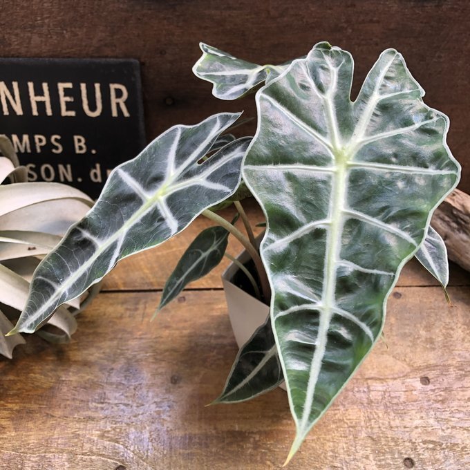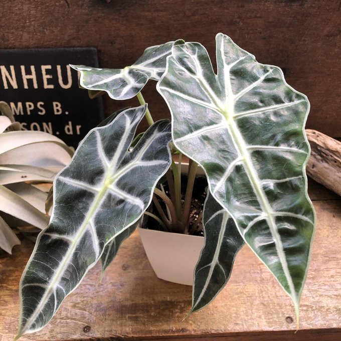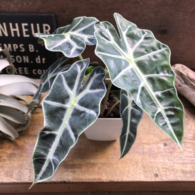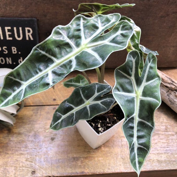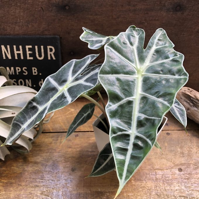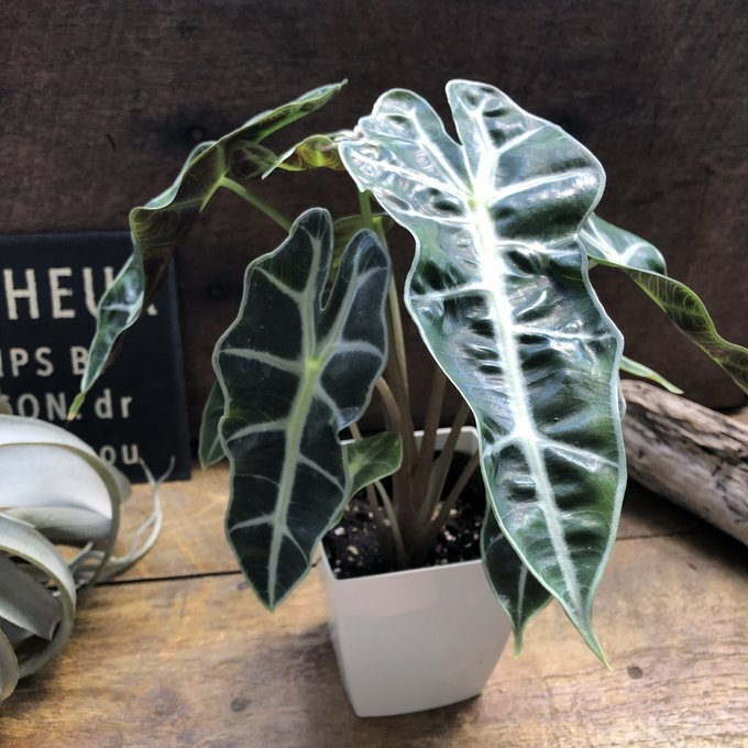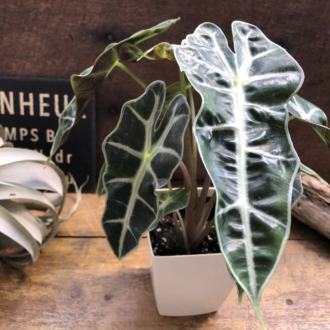 葉っぱと葉脈が非常に美しい観葉植物の『アロカシア アマゾニカ』です。