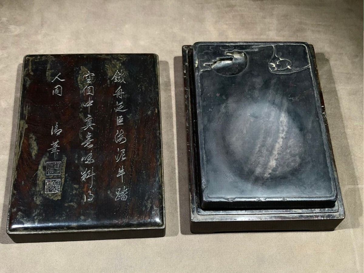 ・寸法約 木合長さ:19.8cm 幅さ:13.7cm 厚さ:5cm 硯長さ:17.6cm 幅さ:11.6cm 厚さ:2.9cm
