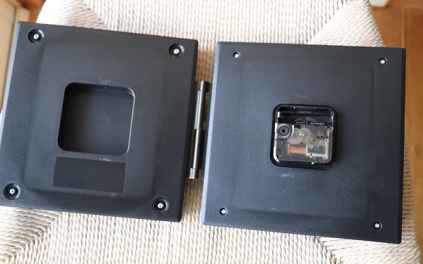 時計と写真立てのそれぞれの四角の大きさ、各18.5cm×18.5cm