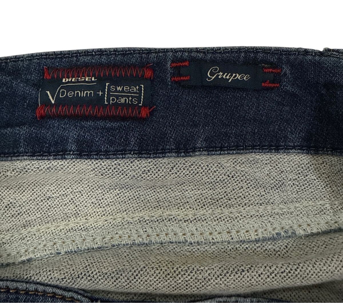 Grupee ユーズドウォッシュ加工 裾カットオフ スウェットデニム になり大変お洒落です